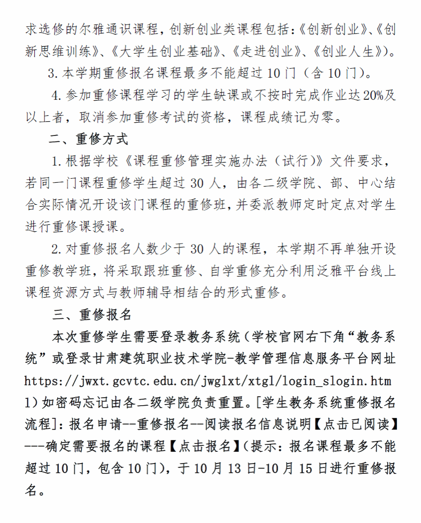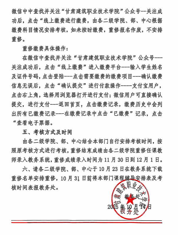 关于2025-2026学年度第一学期开展在校生2023级、2024级学生不及格课程重修工作的通知