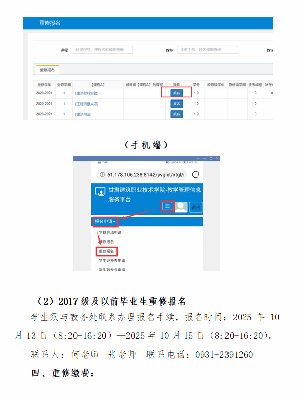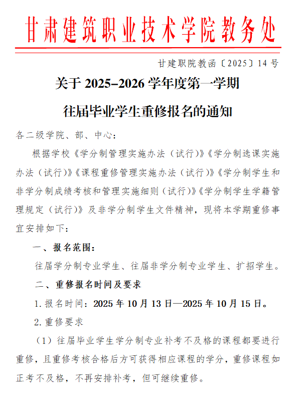 关于2025-2026学年度第一学期往届毕业学生重修报名的通知