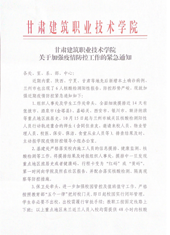 甘肃建筑职业技术学院关于加强疫情防控工作的紧急通知