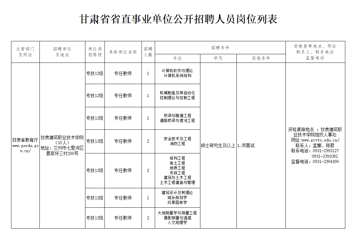 (五)招聘工作在甘肃建筑职业技术学院纪委的全程监督下开展,监督电话:0931-2394169。