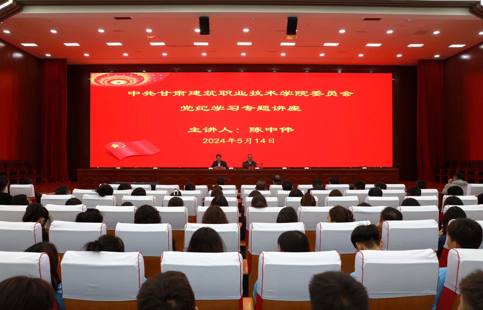 5月14日上午,甘肃建筑职业技术学院召开党纪学习教育专题讲座,省纪委监委第八监督检查室主任陈中伟莅临我院作专题辅导报告。学院领导班子成员,全体中层干部,各党支部支委委员,全体专兼职辅导员以及学生代表聆听讲座。党委委员、纪委书记、监察专员杜彦斌主持。