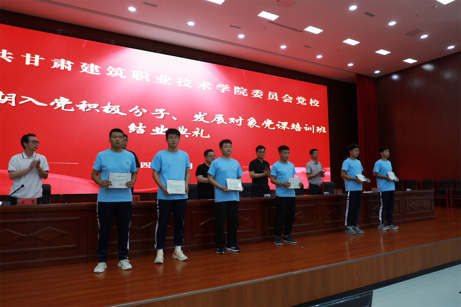 基础课部党总支书记、主任黄治学同志宣读了《中共甘肃建筑职业技术学院委员会党校关于表彰第40期入党积极分子 党员发展对象党课培训班优秀学员的决定》,参会领导们对旦增尼玛、安泰合等32名学员颁发了“优秀学员”荣誉证书,并予以了表彰奖励。