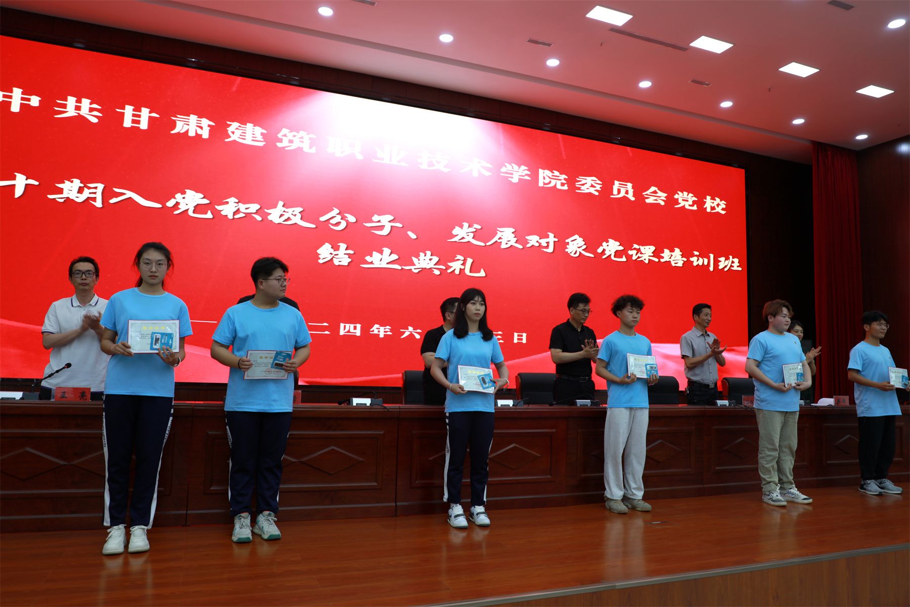 6月13日,甘肃建院举办第四十期入党积极分子、发展对象党课培训班结业典礼。学院党委宣传统战部部长李维敦,组织人事处处长、教师发展中心主任崔涛,各系部党总支书记、师生入党积极分子、党员发展对象代表300余人参加,结业典礼由环境与市政工程系党总支书记王亮主持。