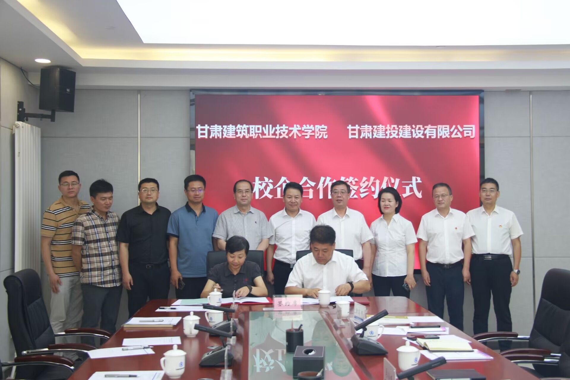 6月18日,学院与甘肃建投建设有限公司举行校企合作签约授牌仪式。学院党委书记、院长王娟丽,党委委员、副院长李君宏,教务处、建筑工程系负责人等参加仪式。甘肃建投建设有限公司党委书记、董事长马小成,党委副书记、总经理孙康才,党委副书记、工会主席芮剑锋,党委委员、副经理魏晋珍以及相关职能部门负责人参加;仪式在甘肃建投建设有限公司九楼3#会议室举行,仪式由马小成主持。