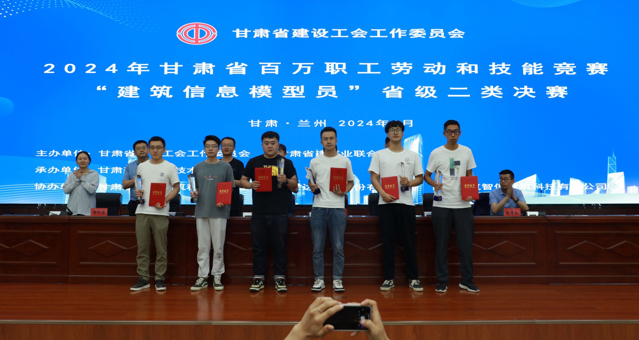 闭幕式上,本次大赛第二裁判长、兰州现代职业学院科技处处长刘宗波宣布了比赛成绩。随后,孙进宣读了表彰决定,参加闭幕式领导现场为获奖集体和选手进行颁奖。