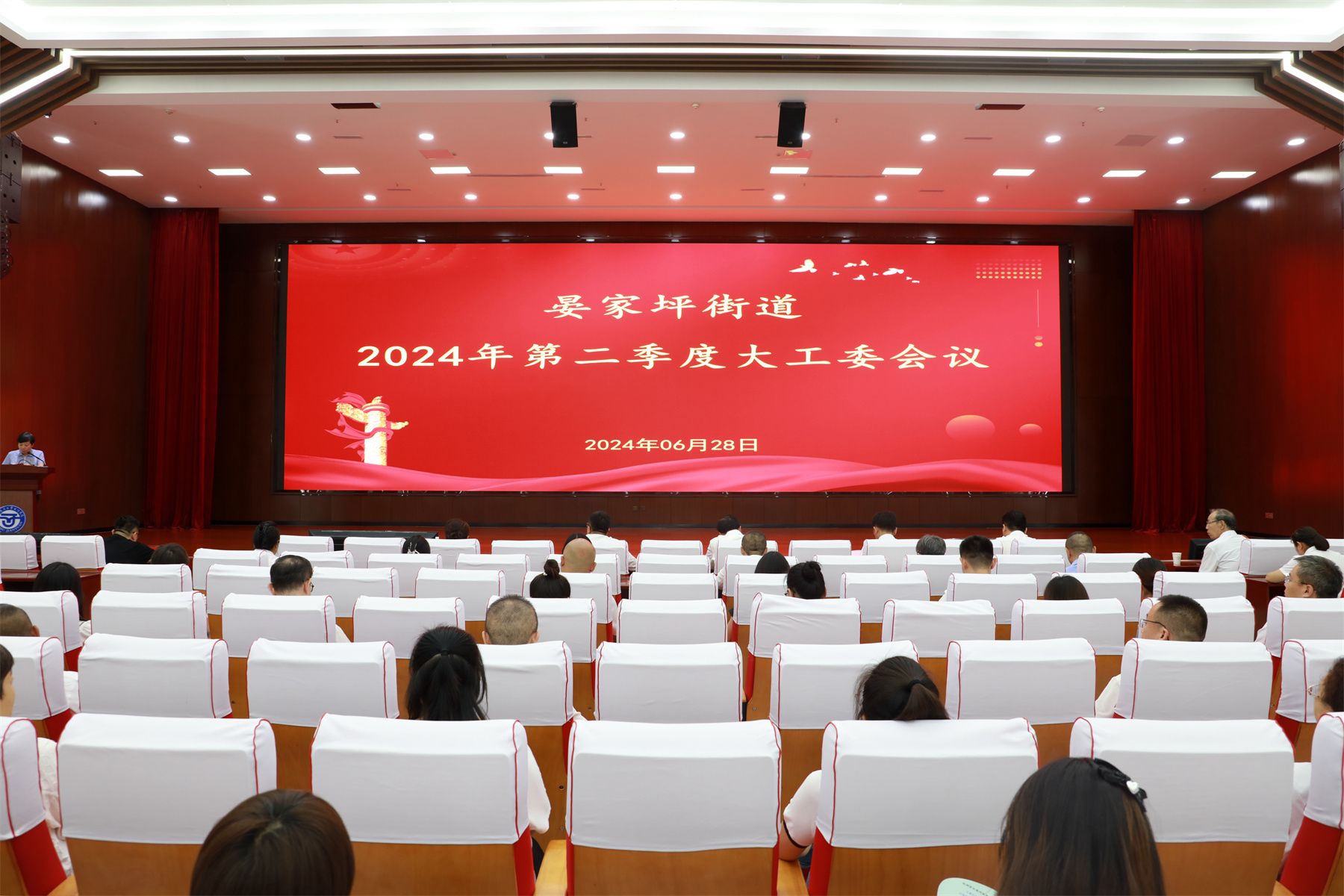6月28日,晏家坪街道2024年第二季度大工委会议在我院多功能会议厅成功举办,学院党委书记、晏家坪街道第二季度大工委轮值主席王娟丽,辖区大工委成员单位主要负责同志、街道班子成员、社区书记、街道机关支部党员等相关人员参加,王娟丽主持会议。