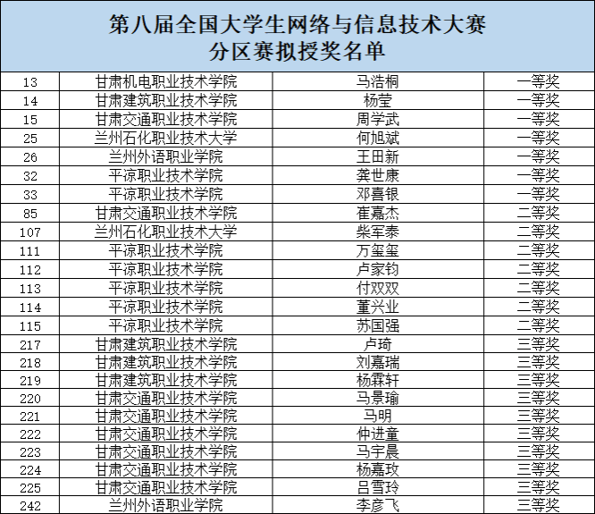 近日,由中国通信学会与教育部全国高等学校电子信息类专业教学指导委员会联合创办的第八届全国大学生网络与信息技术大赛总决赛(高职组5G网络工程实践赛道)已顺利结束。学院共有12名学生报名参赛,经过校内选拔赛后,4名同学晋级分区赛,与四川、重庆、云南、贵州、陕西、宁夏、青海、新疆、西藏等10省区的多所知名院校的学生同场竞技,最终斩获4个奖项,其中一等奖1项,三等奖3项。