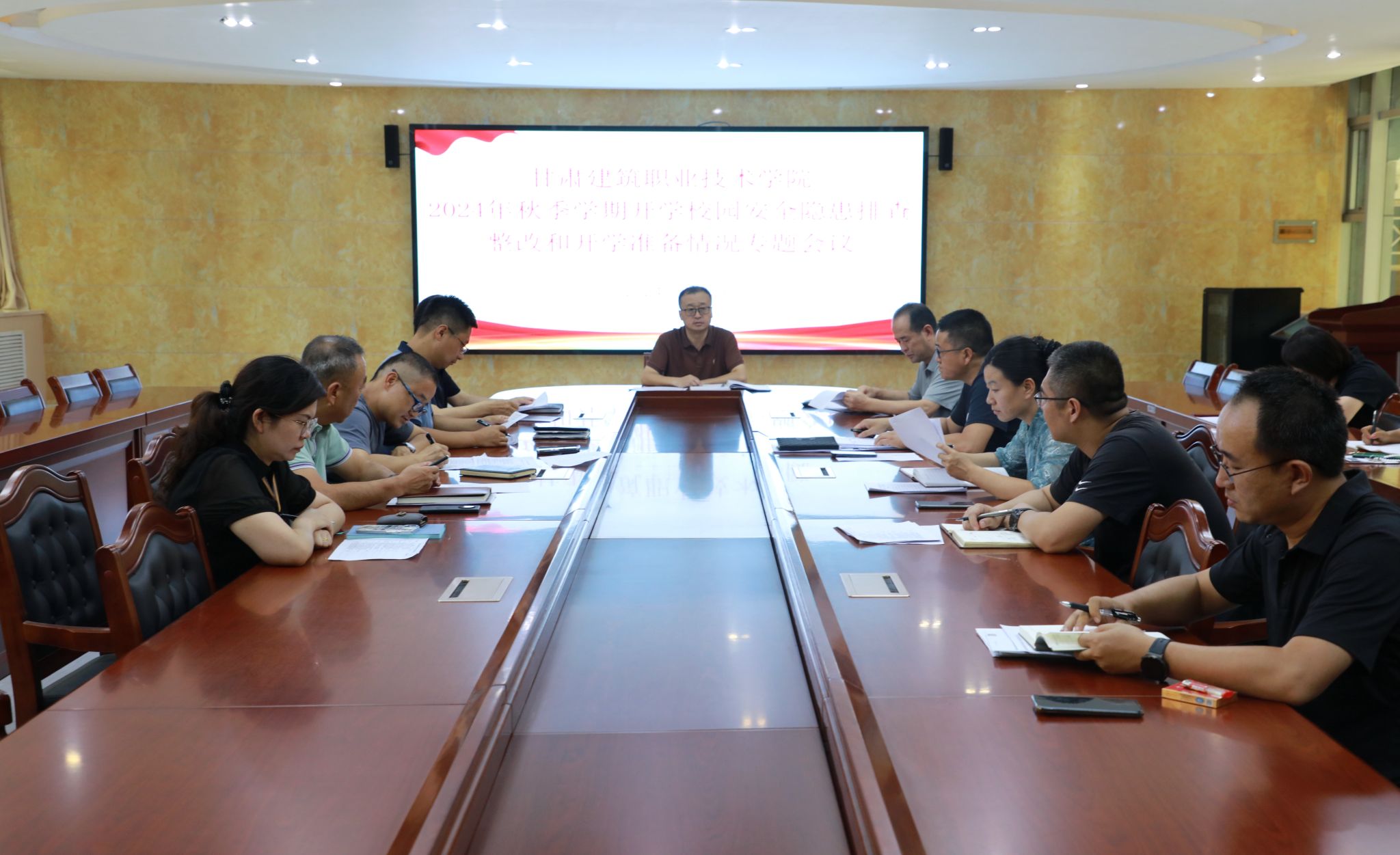 会上,学生处、保卫处、后勤处、基建处、资产公司、教务处以及办公室负责人分别就新生报到安排、校园安全、用水用电安全、食品安全和物资保障、消防和施工安全以及教学和实训管理等方面进行了汇报,并对校园内安全隐患的排查及整改情况作了说明。