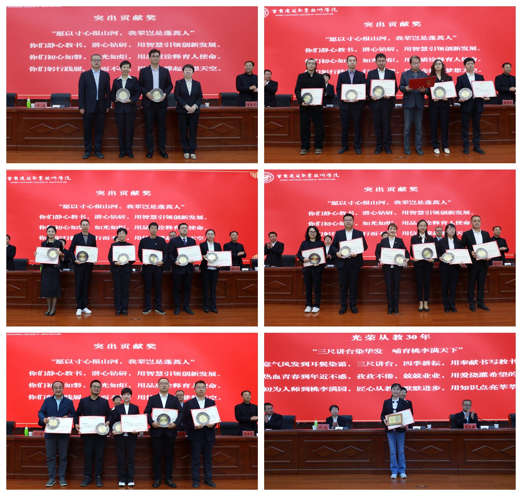 学院领导依次为获得“先进集体”“先进教育工作者”“优秀教师”“优秀辅导员、班主任”“突出贡献”以及“光荣从教30年”荣誉称号的集体和个人颁发了证书。