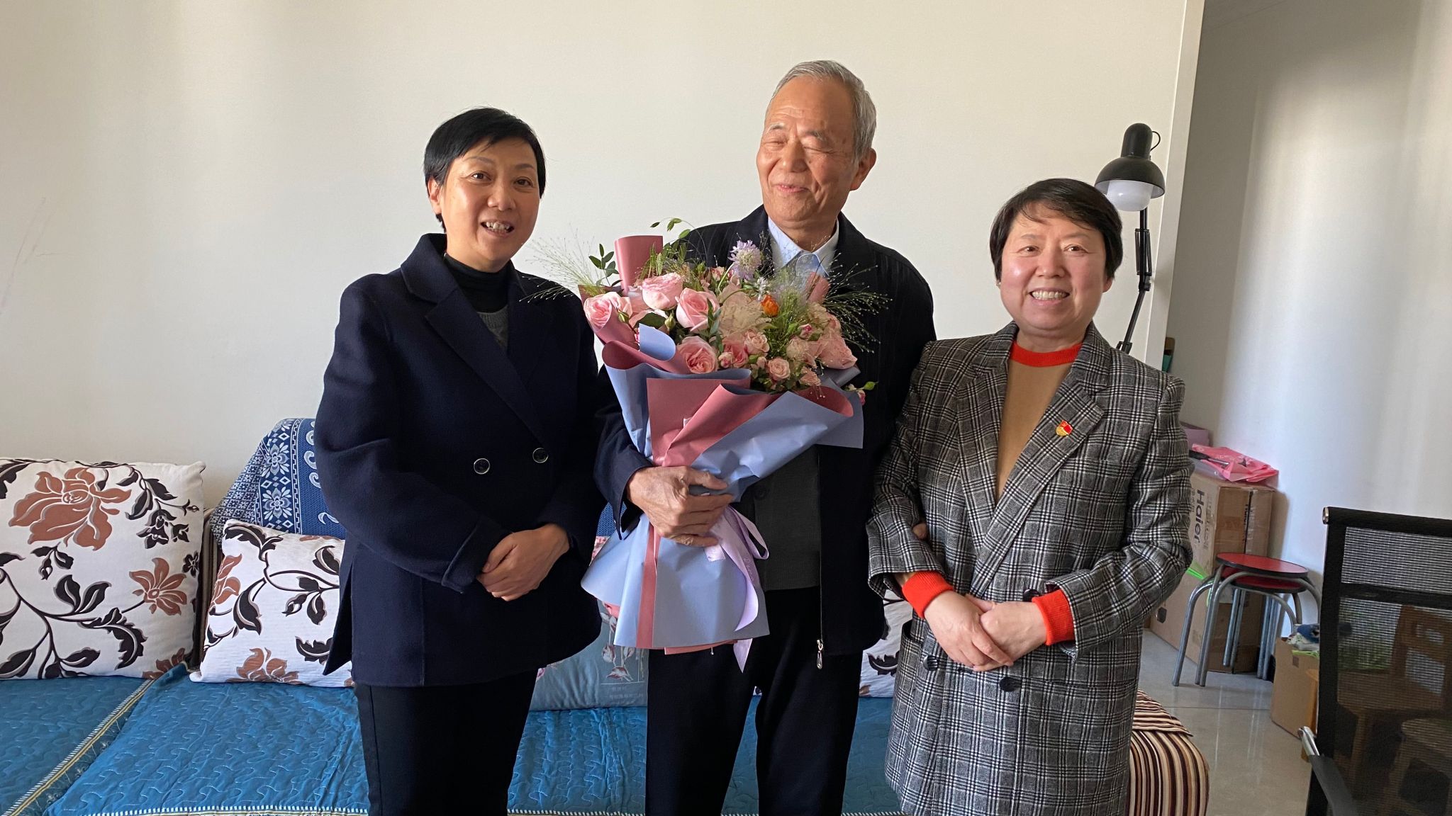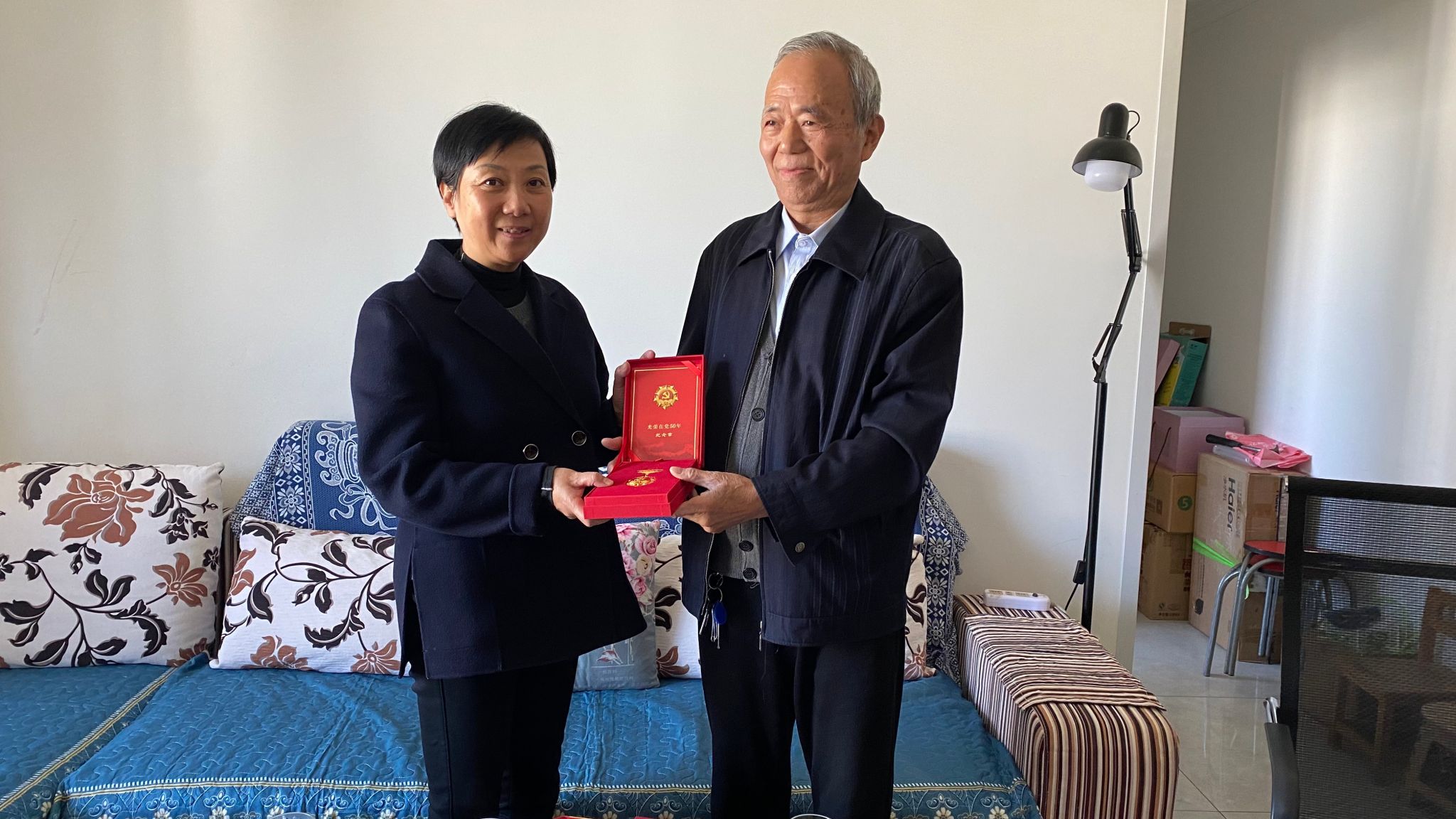 在中国传统节日重阳节来临之际,为表达对老党员的敬意和关爱,我校党委书记王娟丽,党委副书记许洁,工会主席李贵文等一行于10月10日开展了走访慰问“在党50年”老党员活动,为他们送去节日的祝福和诚挚的问候,真正把党的温暖送到老干部心坎上。