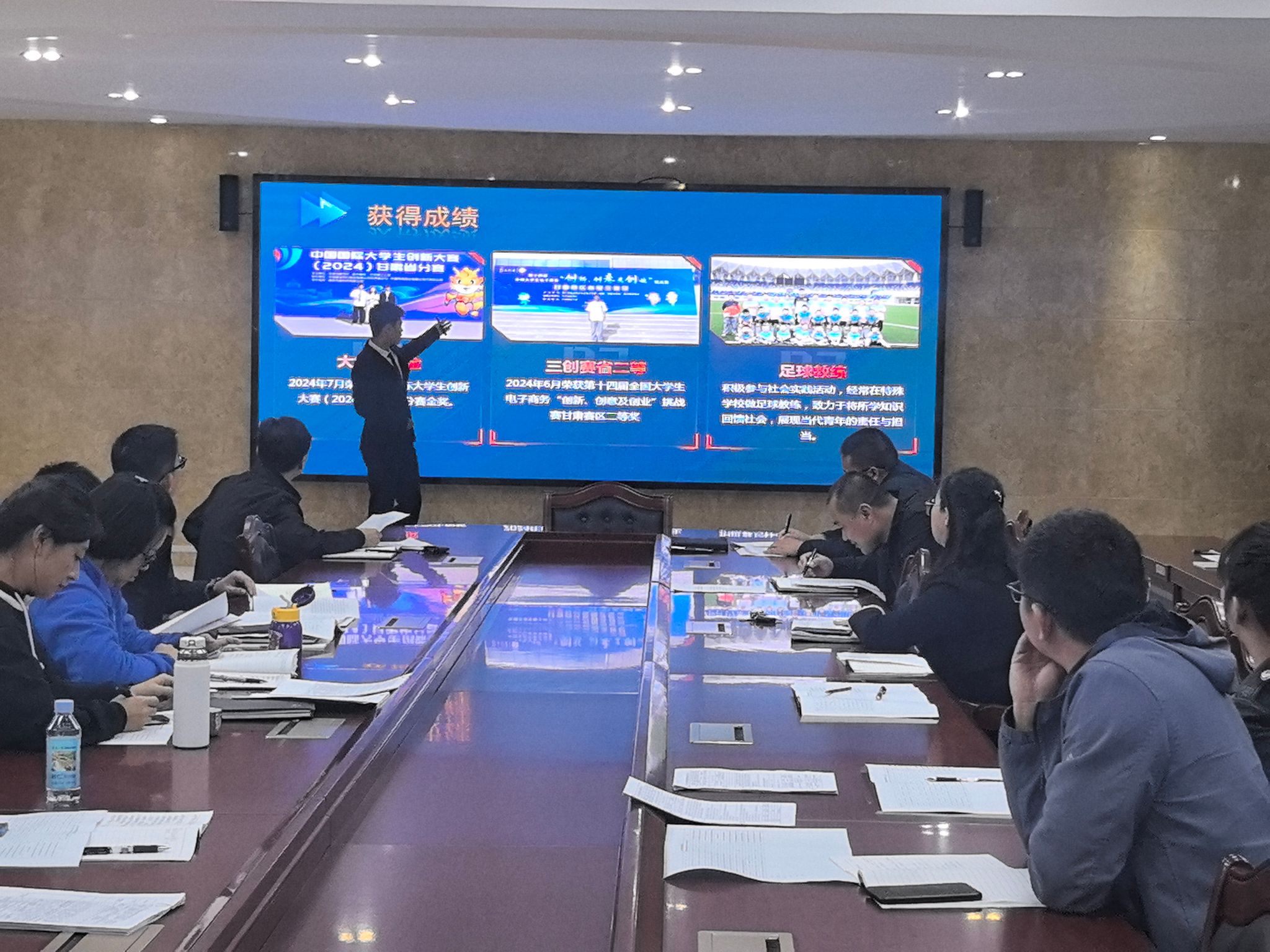 许庆兵对2023-2024学年度国家奖学金的评定名额、评定依据和评定程序进行说明。对国家奖学金的评选范围、评选标准、以及推荐学生的基本情况进行了详细介绍。二级学院对各自的评定过程、拟推荐名单的初审情况、公示情况做了说明。