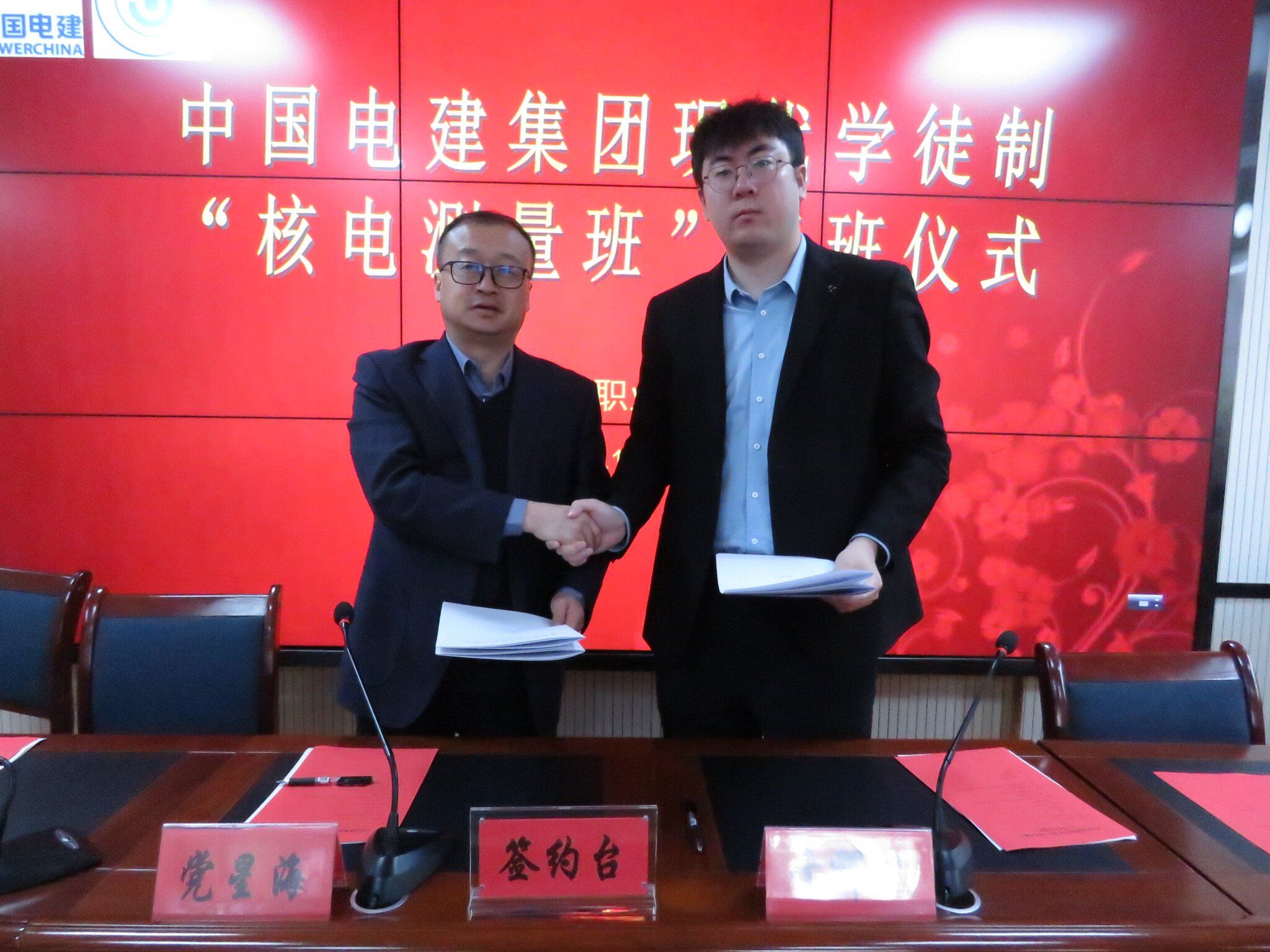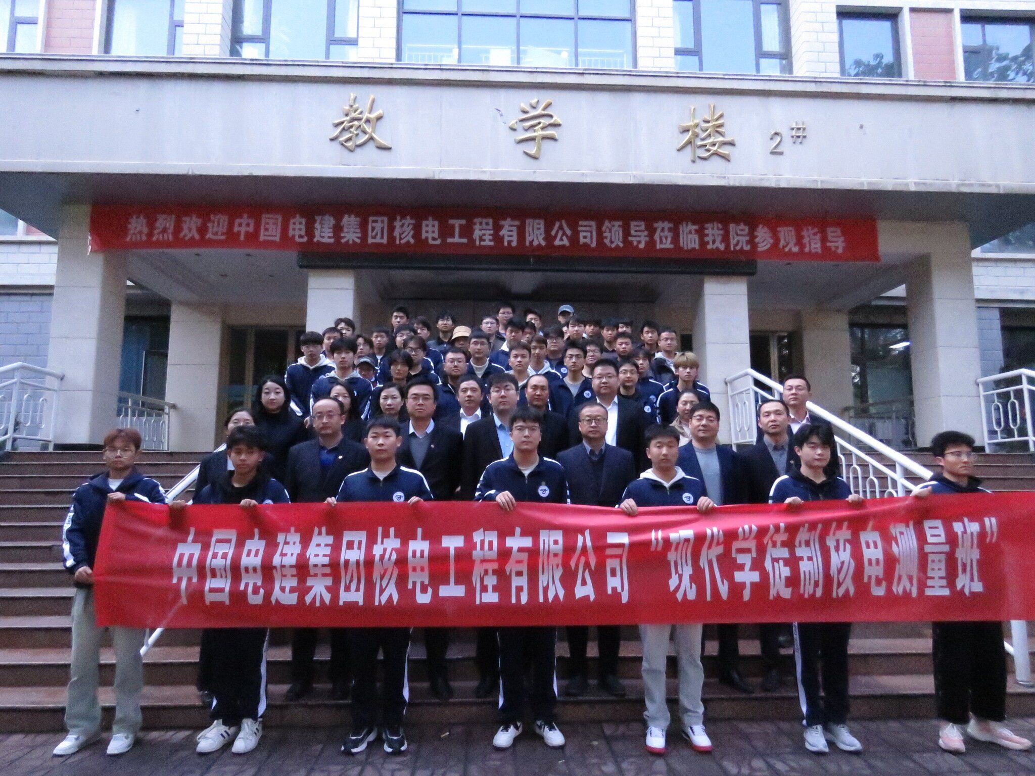 于辉超主管做了发言。他介绍了中国电建集团核电公司的基本情况以及核电测量班开设的目的和意义。赵峰主任也从专业角度谈了工程测量对核电建设的重要性,对核电班的同学们提出了几点要求,期待同学们在核电工程这片广阔的天地里乘风破浪。