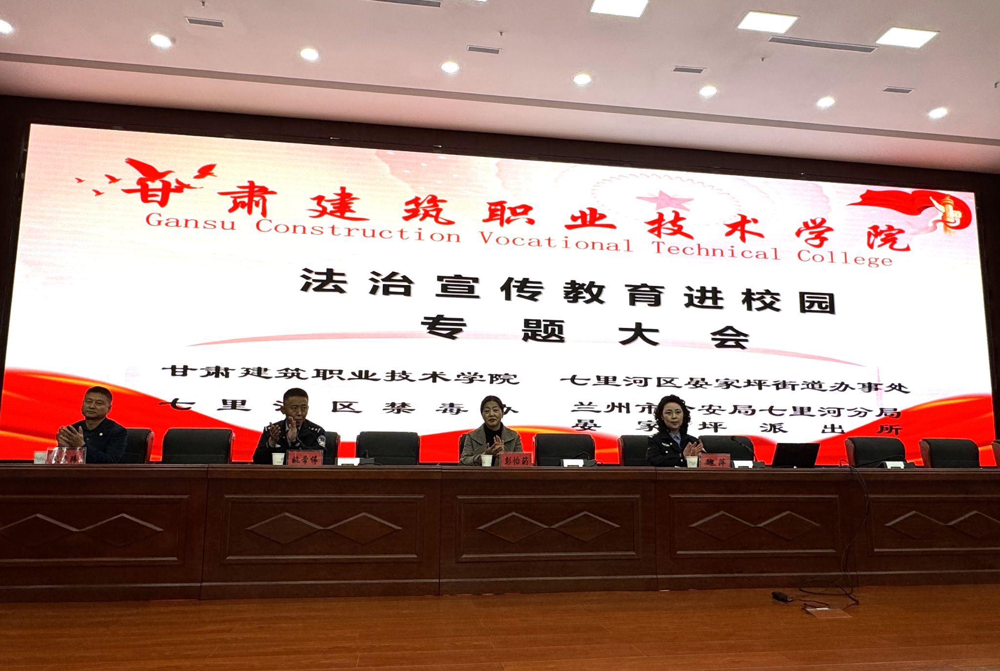 为进一步推进“文明校园”创建工作,促进学生养成良好日常行为习惯,构建安全文明、稳定和谐的校园环境,提高学生防毒品、防范电信诈骗意识,11月7日学院举办了“落实立德树人任务 传承优良校风学风”系列讲座活动,七里河区禁毒办主任魏萍,晏家坪街道平安法治办主任彭怡菂、派出所姚常伟警官,学校学生工作处副处长张希玮做宣讲,500名学生干部参会。