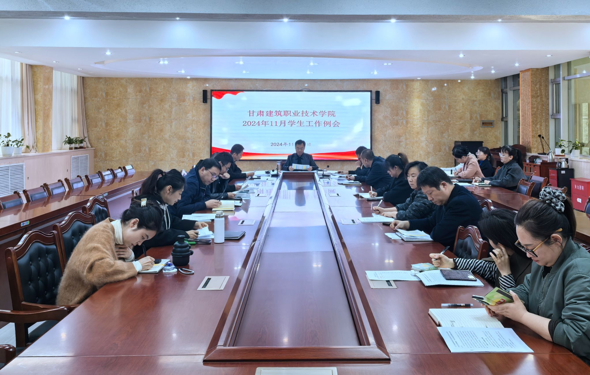 11月12日上午,学院在1号教学楼新会议室召开了本月学生工作例会。党委委员、副校长高忠有,各二级学院党总支书记、学生干事及学生工作处全体人员参加了会议。会议由高忠有主持。