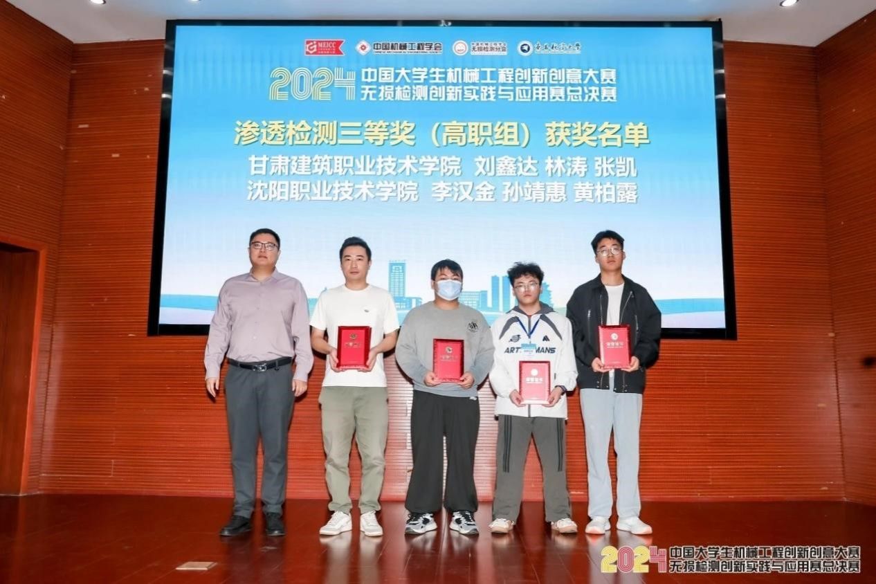 11月14日至17日,中国大学生机械工程创新创意大赛无损检测创新实践与应用赛总决赛在赣江之滨、英雄城南昌成功举办。由我校智能制造学院理化测试与质检技术专业团队赵志强、王成老师指导的刘鑫达、林涛、张凯在渗透检测赛项荣获团体三等奖。