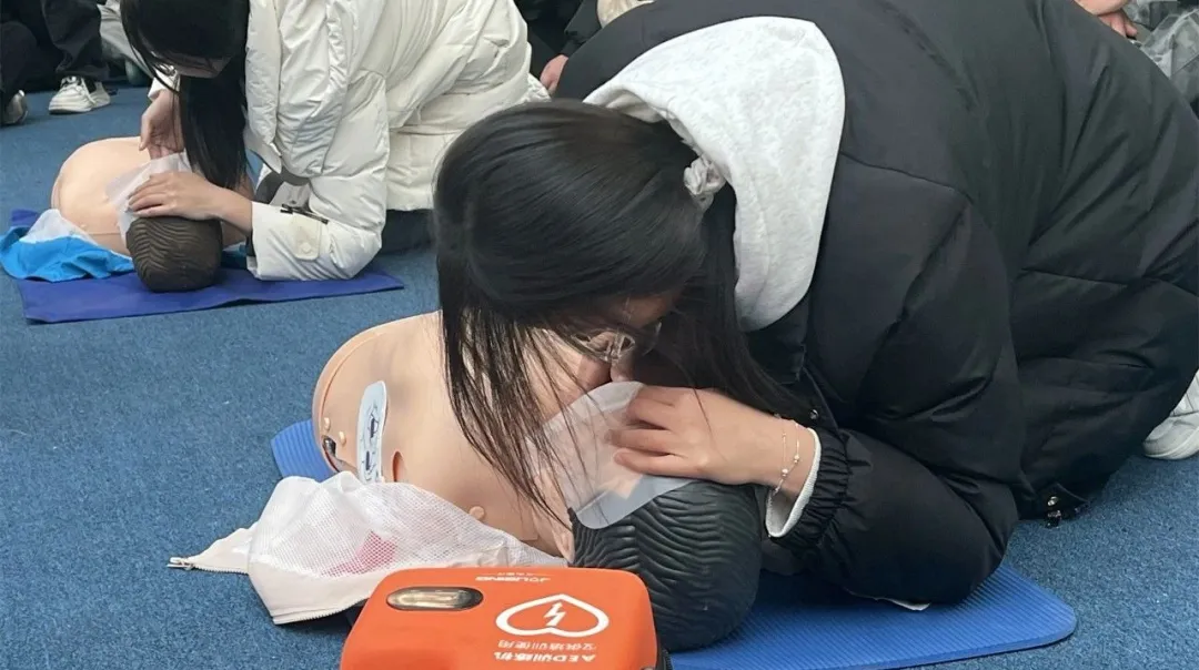进入实操练习阶段,同学们分组进行模拟演练,在红十字会培训老师的悉心指导下,反复练习各项急救技能,逐渐从生疏走向熟练,规范的操作动作逐渐成型。