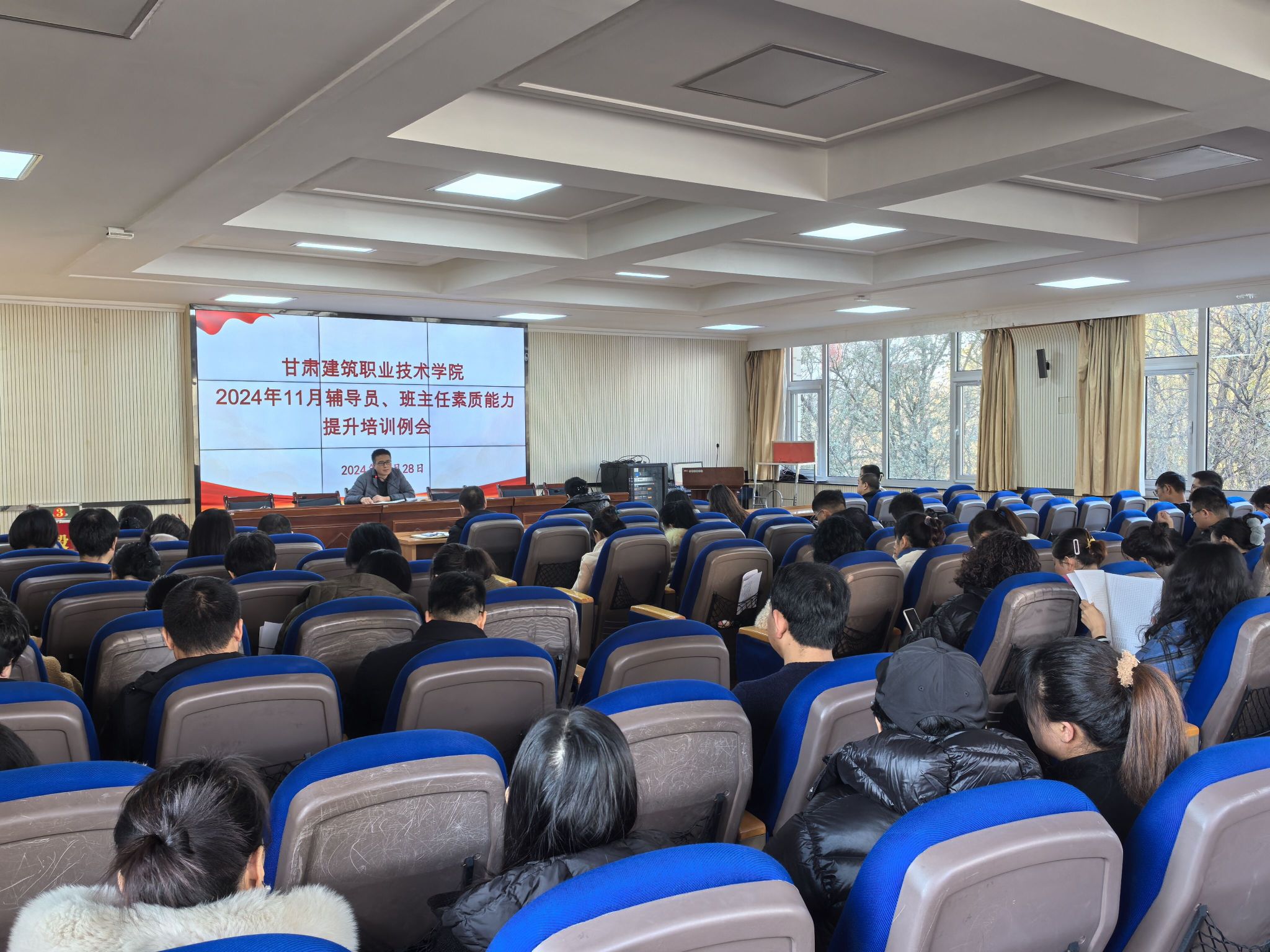 11月28日下午,学校在学术报告厅召开了本月辅导员、班主任素质能力提升培训例会,全体一线专、兼职辅导员、班主任以及学生工作处人员参加了会议。会议由学生工作处处长许庆兵主持。