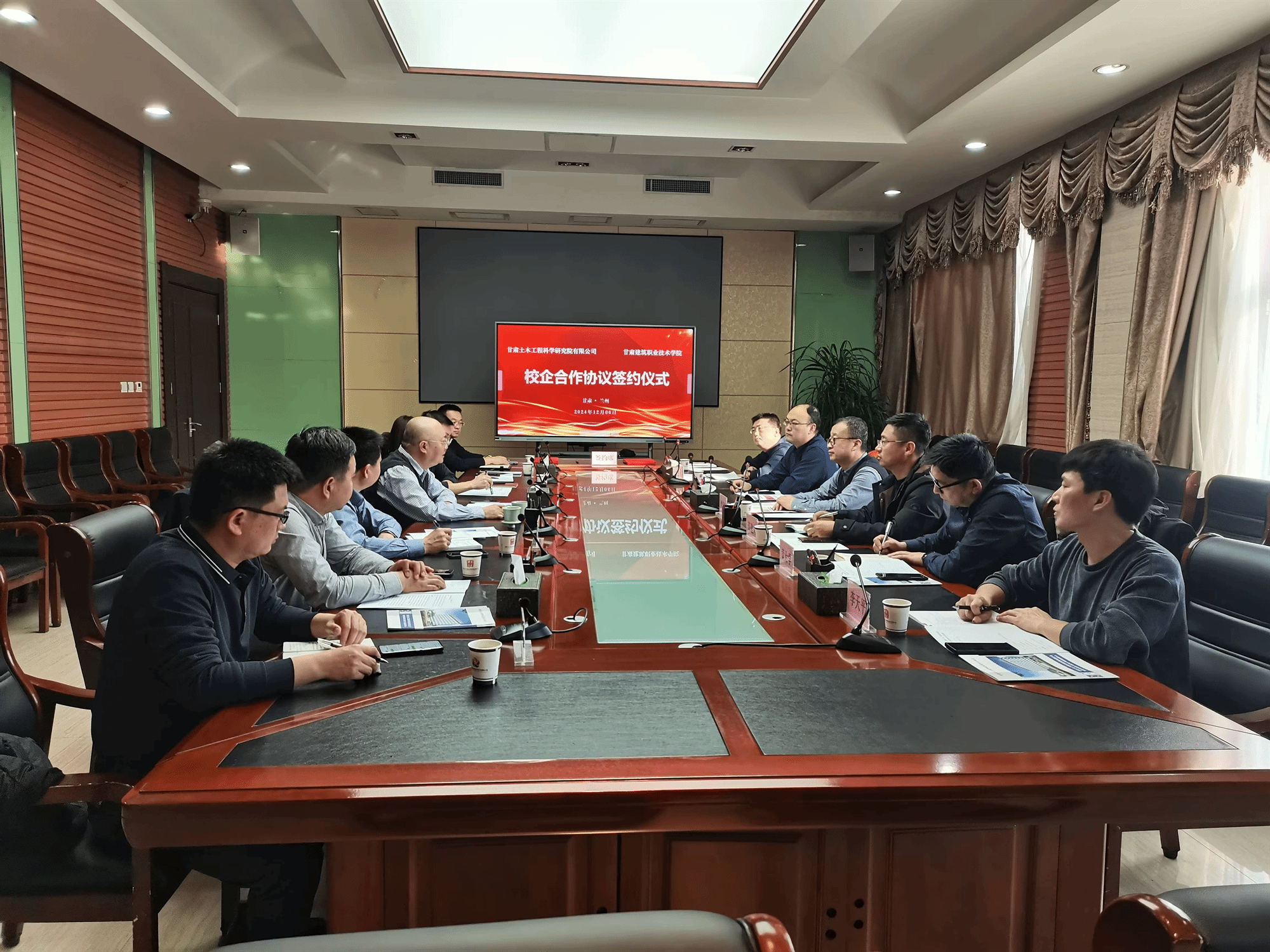 为深化产教融合,助力科研落地,强化技术技能人才培养。12月6日,甘肃建筑职业技术学院与甘肃土木工程科学研究院举行了校企合作协议签约仪式,学校党委副书记、校长党星海,甘肃土木工程科学研究院董事长曹庆,学校党委宣传统战部部长高建兴,教务处、科技处处长席攀锋,办公室主任黄治学,建筑工程学院副院长李斌及企业相关部门负责人等参加。