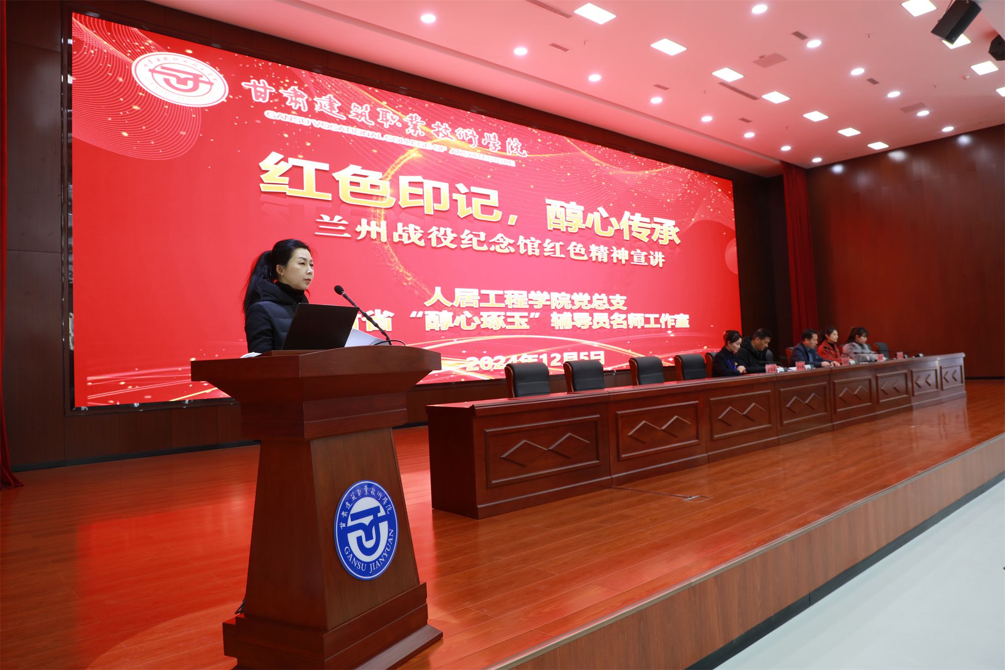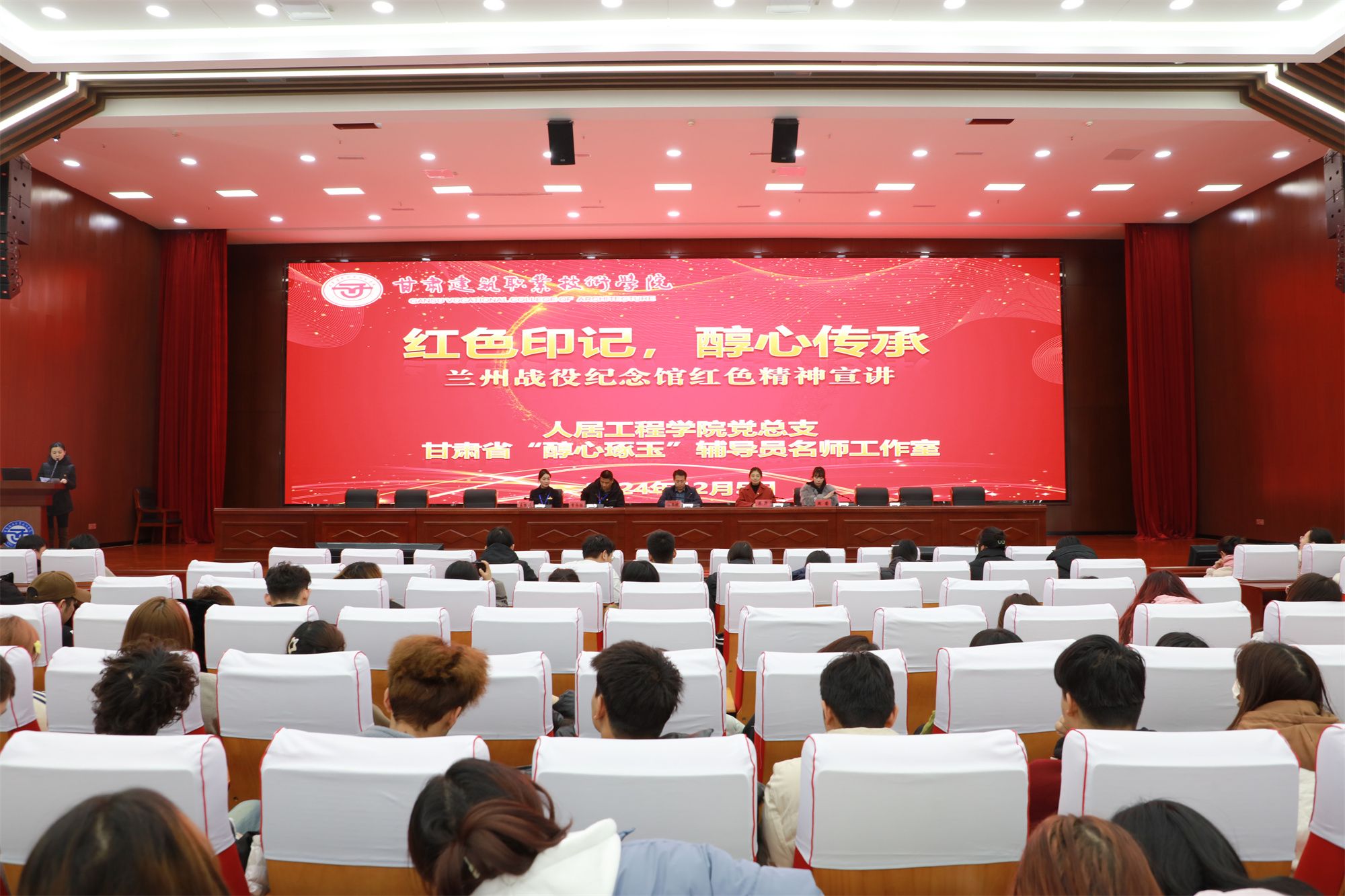 12月5日,受我校人居工程学院党总支和“醇心琢玉”名师工作室的邀请,兰州战役纪念馆馆长李永强、科长王丽娟莅临我院,在多功能报告厅为学院的师生们带来了一场别开生面的红色精神宣讲活动。此次活动旨在传承红色基因,弘扬革命精神,让年轻一代在历史的印记中汲取前行的力量。学校党委委员、纪委书记、监察专员杜彦斌,人居工程学院党总支书记蔡萍,团委副书记周睿,人居工程学院全体党员教师及2023级、2024级全体学生参加,宣讲由“醇心琢玉”名师工作室刘丽华主持。