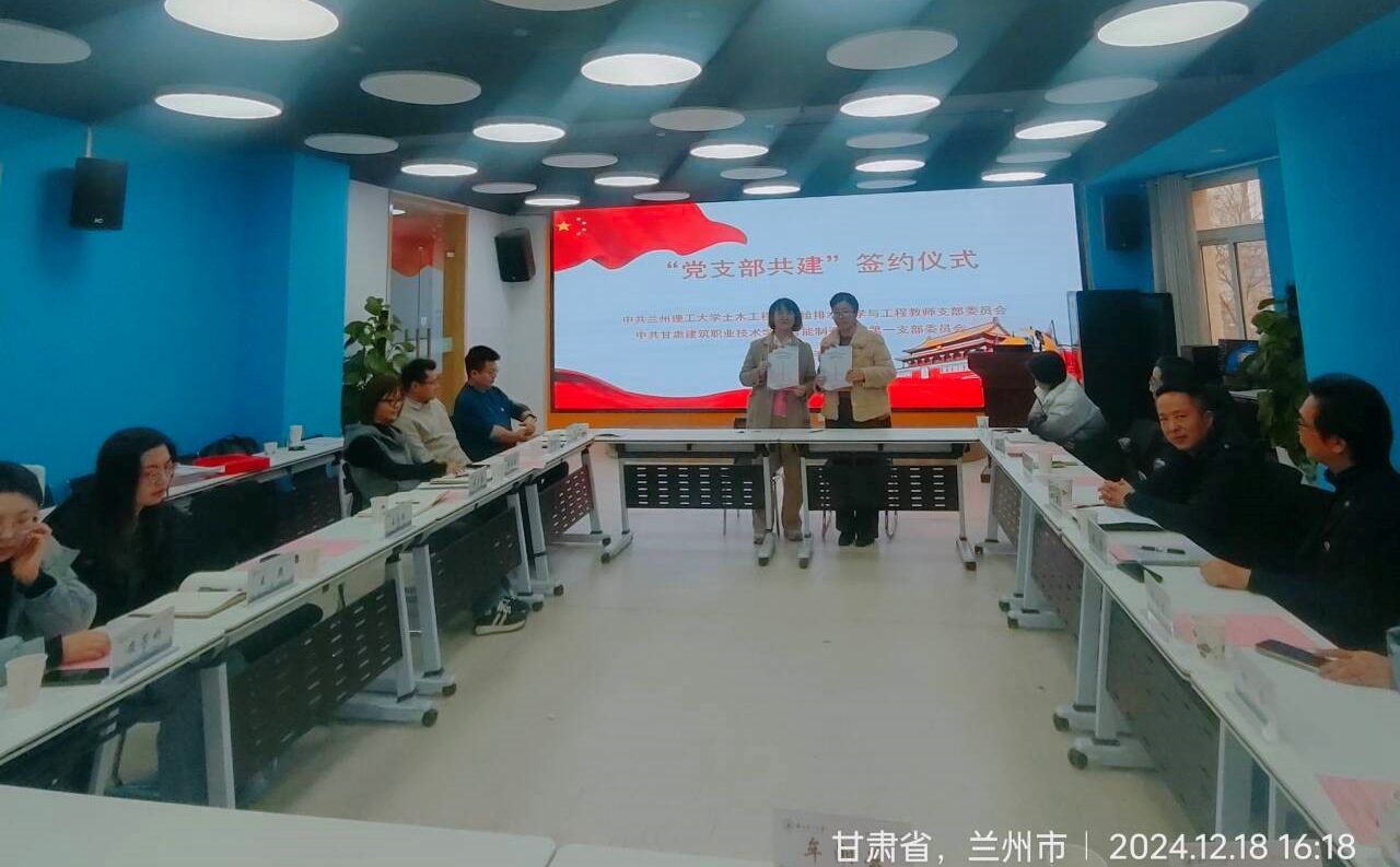 为了深入学习贯彻党的二十届三中全会精神、全国教育大会精神,进一步夯实党建工作基础,增进兄弟院校支部间学习交流,加强组织联建,促进党建与业务工作深度融合,12月18日下午,兰州理工大学土木工程学院给排水科学与工程教师党支部,甘肃建筑职业技术学院智能制造学院第一党支部开展了“人水和谐,党旗红”支部共建主题党日活动,2个支部共20名党员参加。