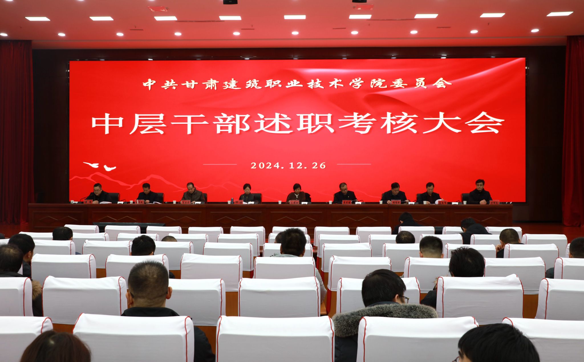 12月26日,甘肃建筑职业技术学院召开2024年度中层干部述职考核大会,党委书记王娟丽及领导班子成员,全体中层干部,教职工代表参会,会议由组织人事处处长、教师发展中心主任崔涛主持。