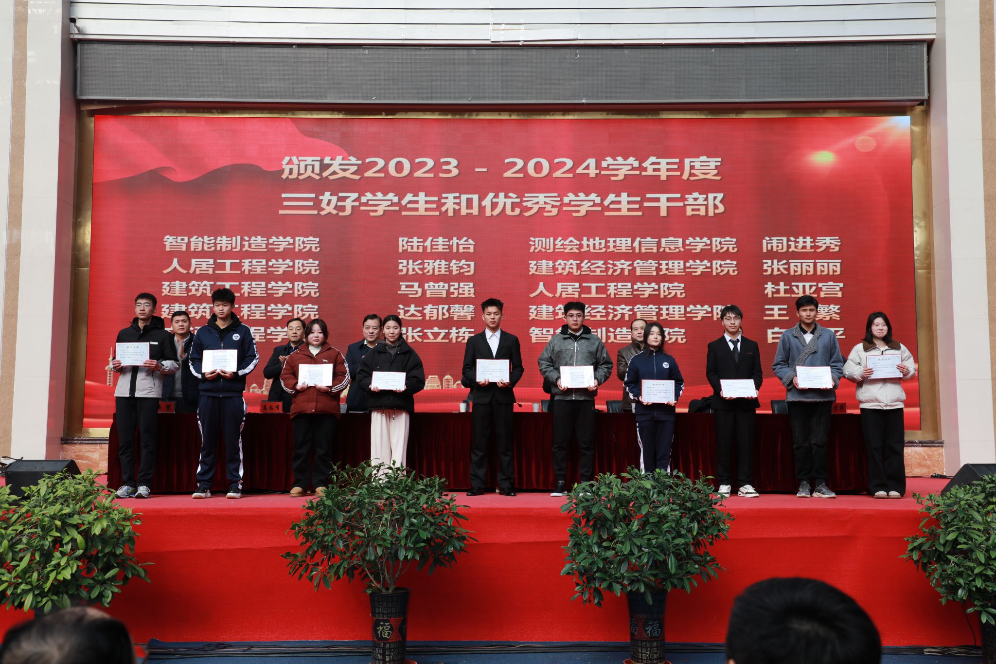 会上,许洁宣读了《甘肃建筑职业技术学院关于表彰2023-2024学年度先进班集体、三好学生、优秀学生干部的决定》《甘肃建筑职业技术学院关于表彰2023-2024学年度各类奖学金获奖者的决定》。