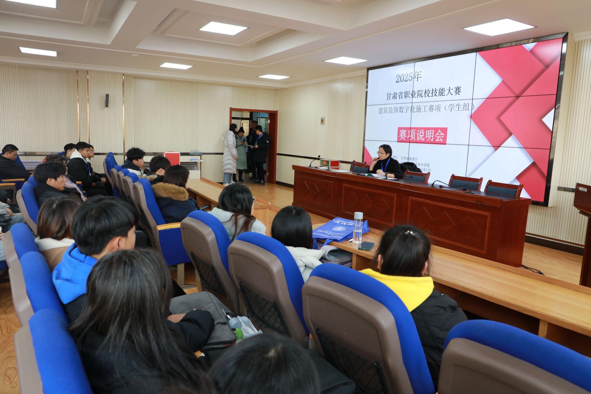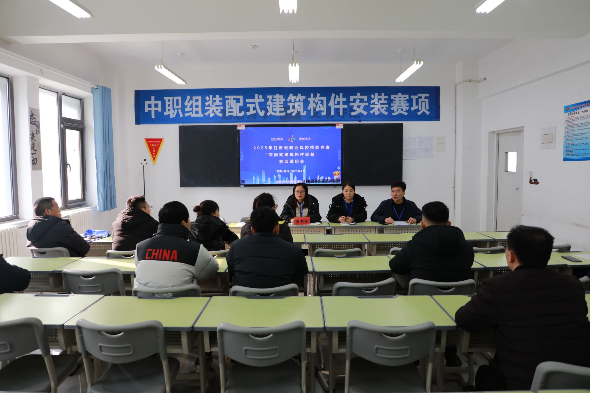 2025年甘肃省职业院校技能大赛甘肃建院赛点各赛项将于1月5日至7日举行。此次大赛我校承办中职组"装配式建筑构件安装"、高职组"装配式建筑智能建造""建筑装饰数字化施工""环境艺术设计""产品艺术设计"共5个赛项,共有来自各个院校的62支参赛队、231名参赛选手参加。