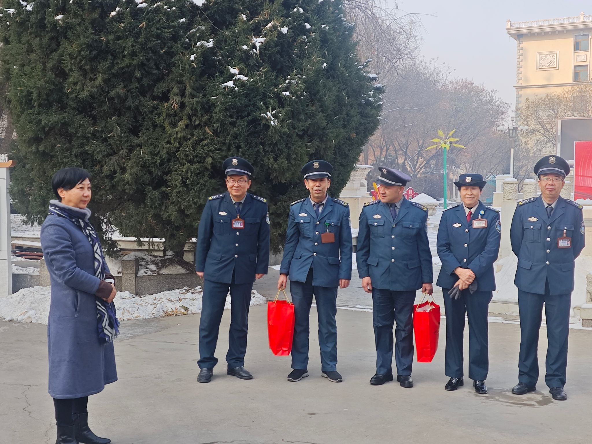 1月29日,甘肃建筑职业技术学院党委书记王娟丽,党委副书记、校长党星海一行慰问了春节期间坚守岗位的值班人员,为他们送上新春祝福,并对寒假期间的安全生产、供暖保障及校园安保工作作出指示。办公室主任黄治学,保卫处处长郝昭,后勤处处长李泰儒等相关人员陪同。