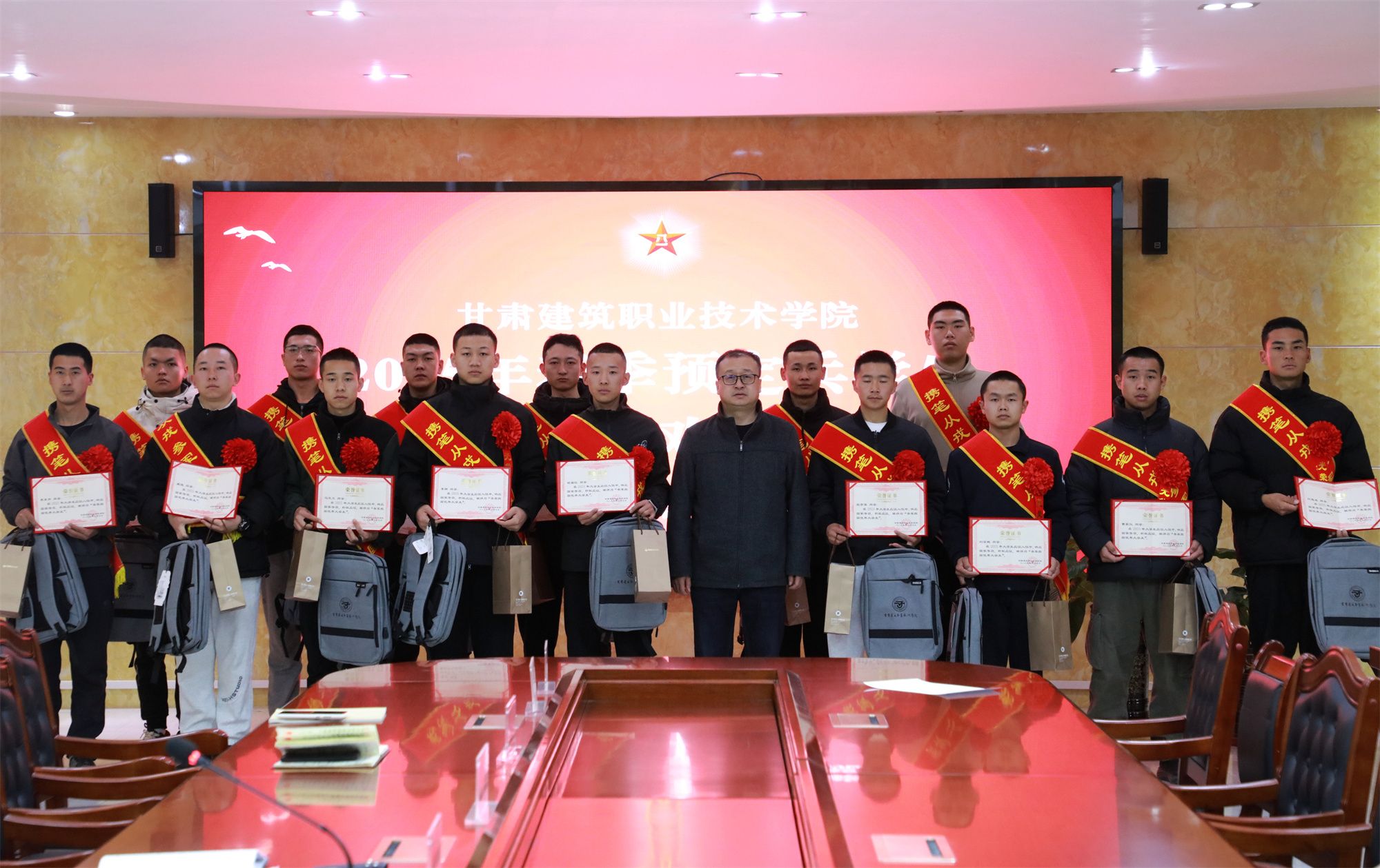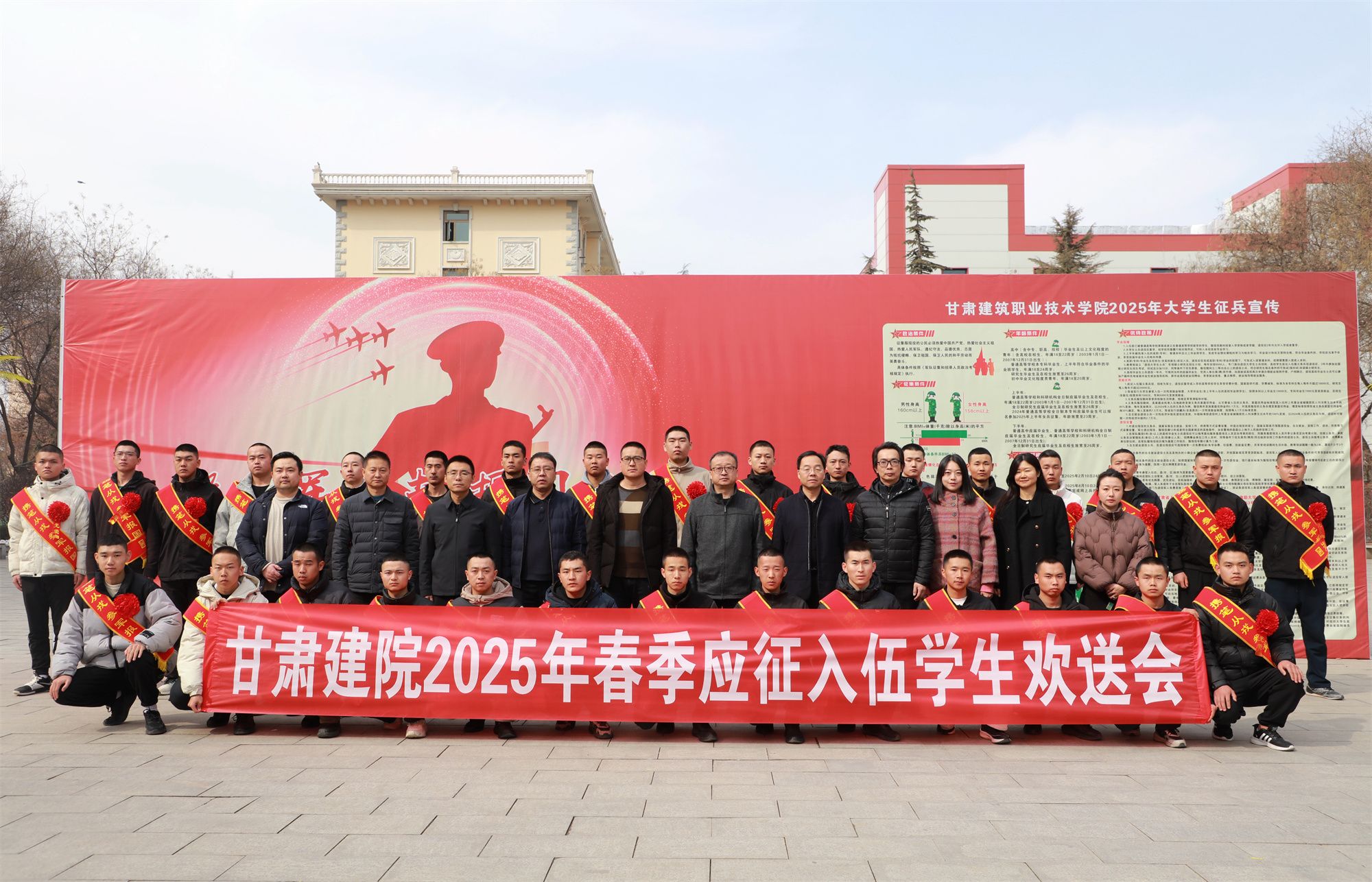 会上,高忠有代表学校向光荣入伍的学子表示热烈祝贺,充分肯定他们“将个人理想融入强军梦”的家国情怀。他指出,学校历来高度重视大学生入伍工作,2017年以来学校向部队输送优秀学子1500多人,连续3年获评“甘肃省征兵工作先进单位”,多次荣获市、区级“征兵工作先进单位”。尤其自2023年突出毕业生征集以来,学院已向部队输送优秀毕业生近280人,2025年春季毕业生报名460余名,这份成绩凝聚着师生的共同奋斗,更彰显了建院学子“携笔从戎、报效祖国”的精神传承,学校将持续做好入伍学生的学籍保留、学费补偿代偿等相关工作。