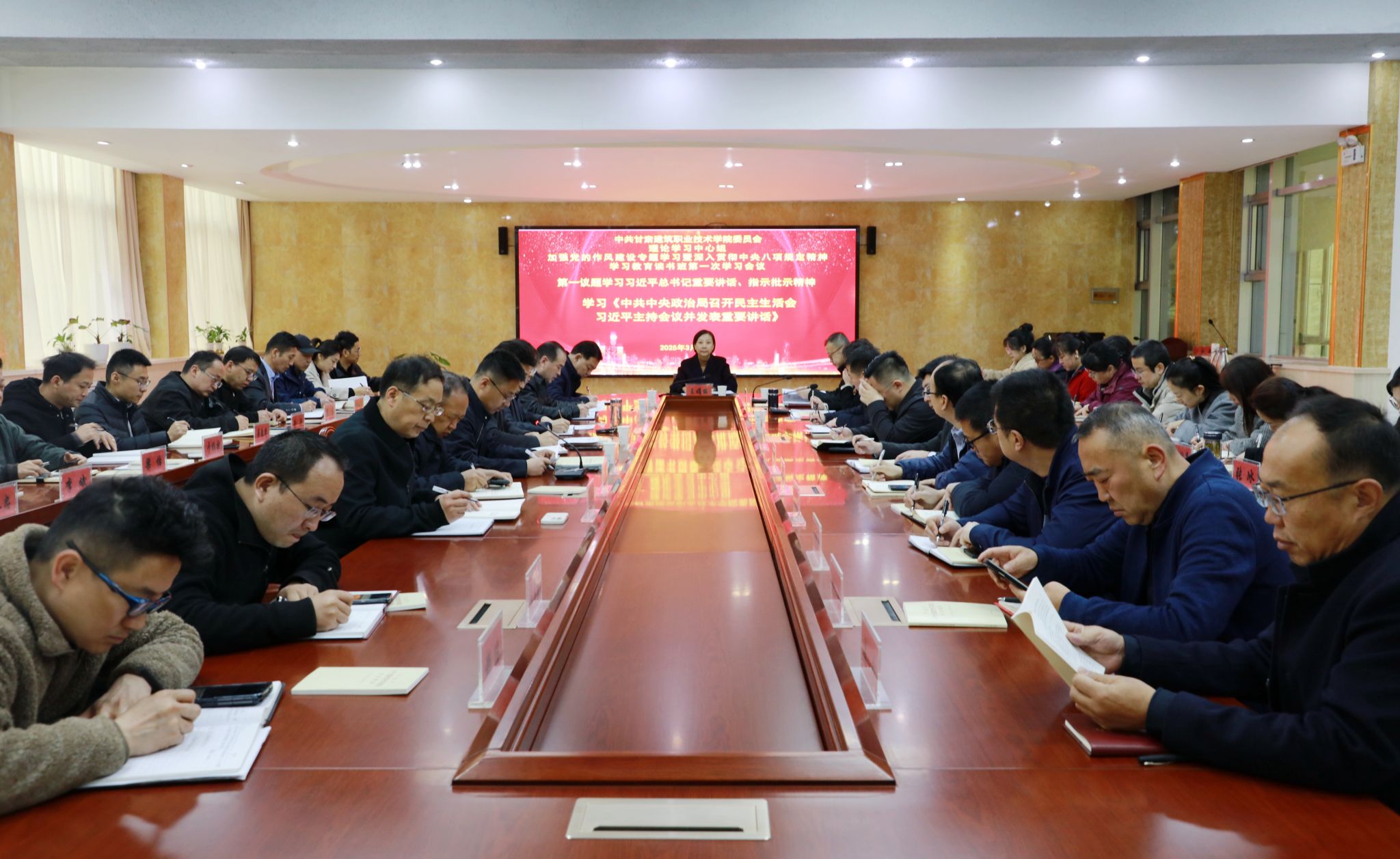 3月31日,甘肃建筑职业技术学院深入贯彻中央八项规定精神学习教育读书班开班。党委书记王娟丽及领导班子,中心组全体成员参加学习会议,会议由党委宣传统战部部长高建兴主持。