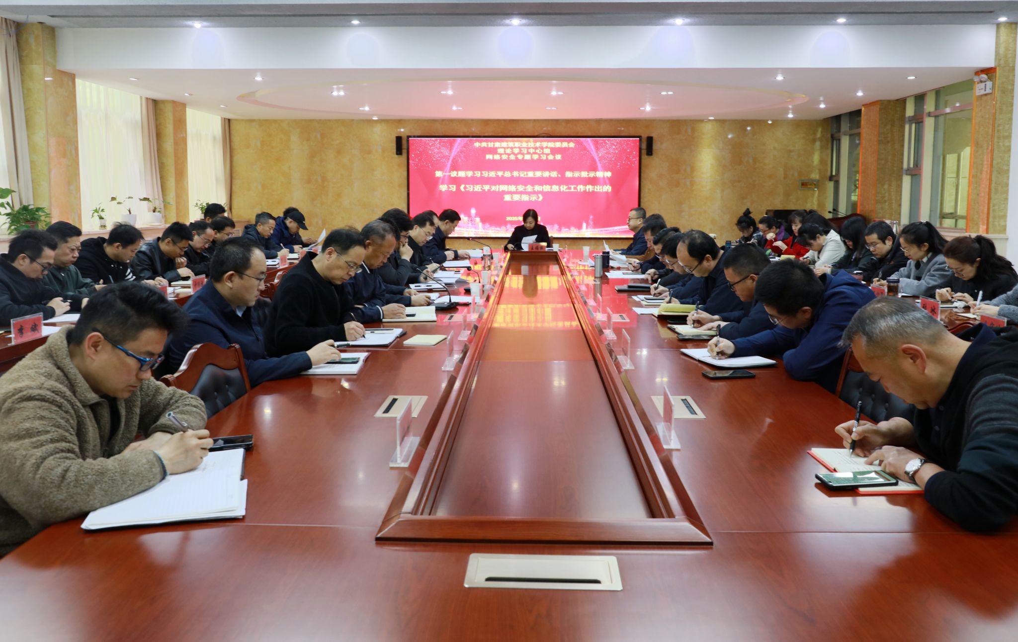 4月7日,甘肃建筑职业技术学院党委理论学习中心组召开专题学习研讨会议。党委书记王娟丽及领导班子,中心组全体成员参加学习会议,会议由党委宣传统战部部长高建兴主持。