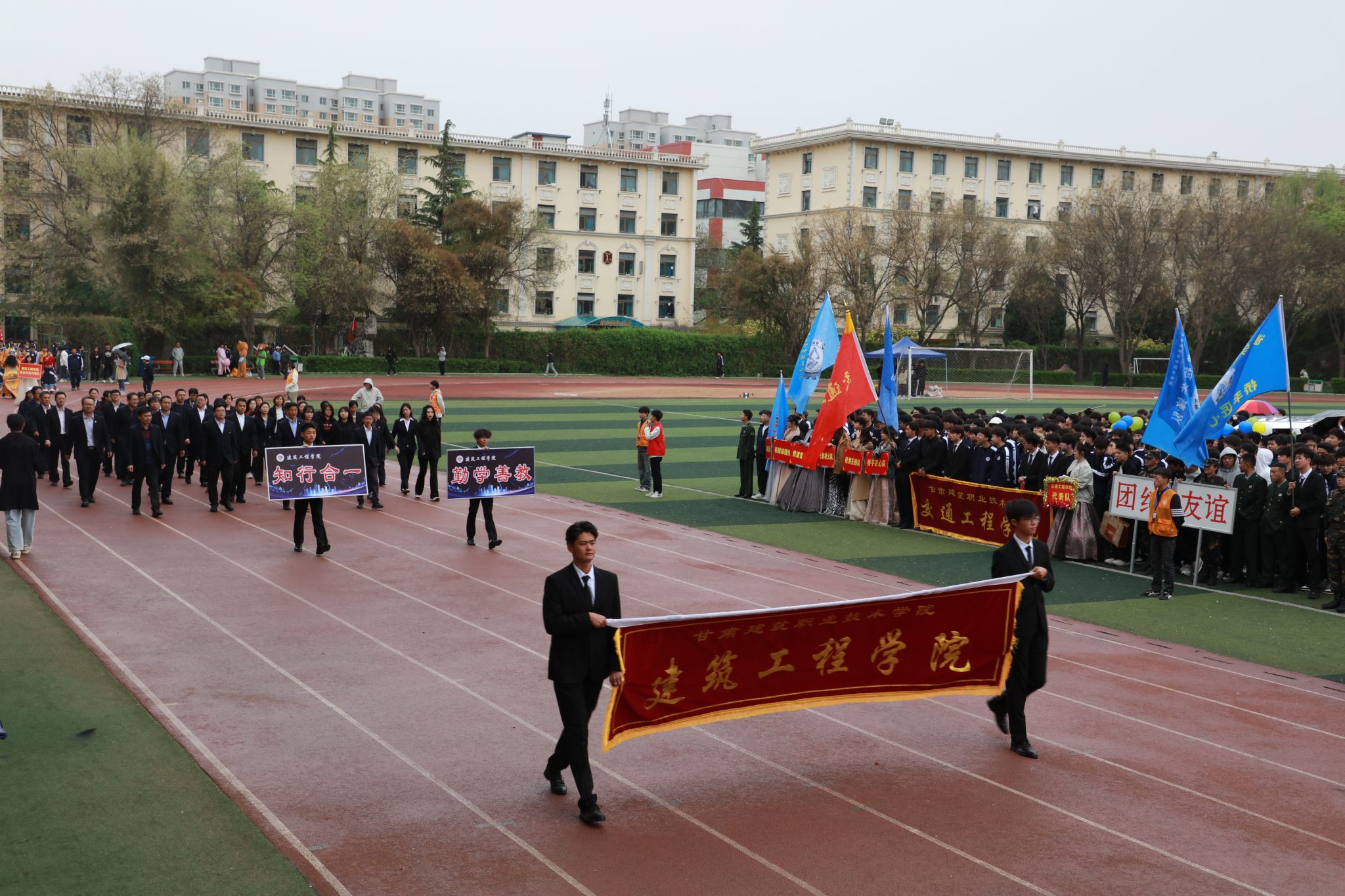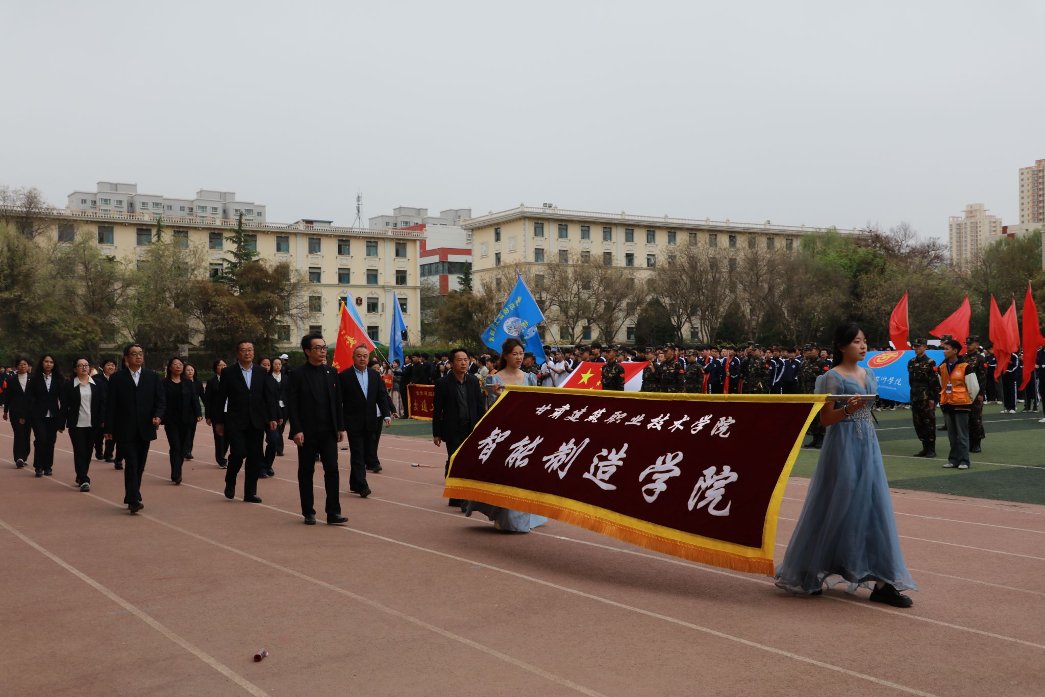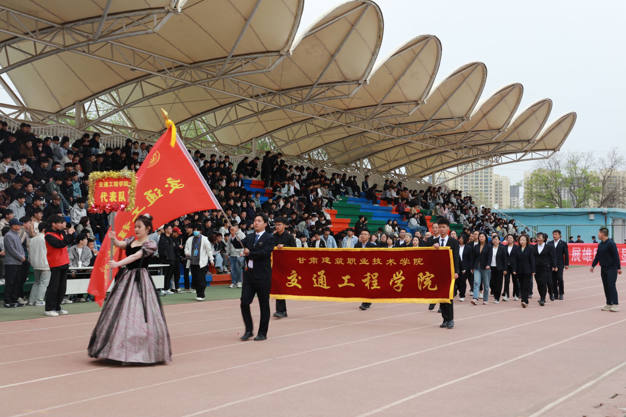 4月27日,甘肃建筑职业技术学院第三十一届田径运动会开幕。党委书记王娟丽及领导班子成员,相关部门负责人与全体师生参加开幕式。开幕式由党委委员、副校长李维敦主持。