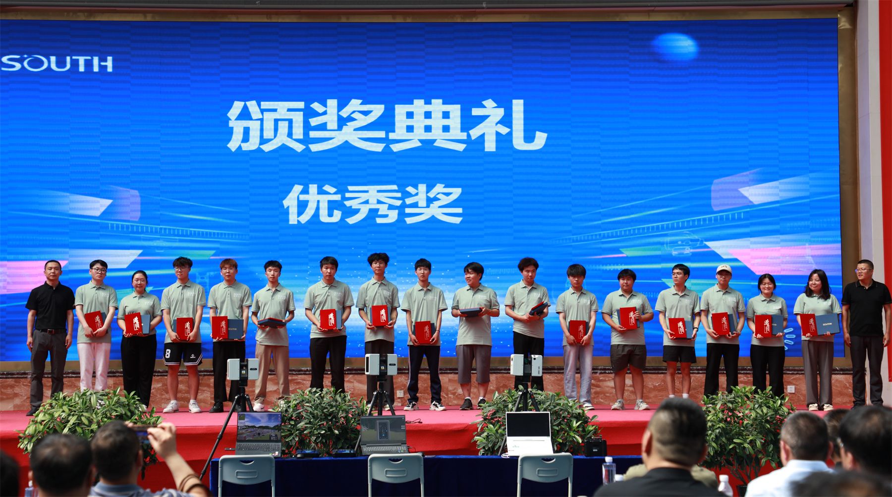 随后,兰州资源环境职业技术大学党委委员、副校长、大赛裁判长王利军宣布开赛。本次大赛,共有来自10所学校的10支队伍、40名参赛选手通过应用虚实结合的全站仪、RTK、无人机、架站式三维激光扫描仪等在元宇宙智能测绘场景中完成对目标测区的数字测图、无人机古建筑寻宝及古建筑点云三维建模任务。经过激烈角逐,大赛最终评选出特等奖1项、一等奖2项及二等奖3项。我校闫德明、万应玲老师指导的“智绘先锋队”获特等奖。