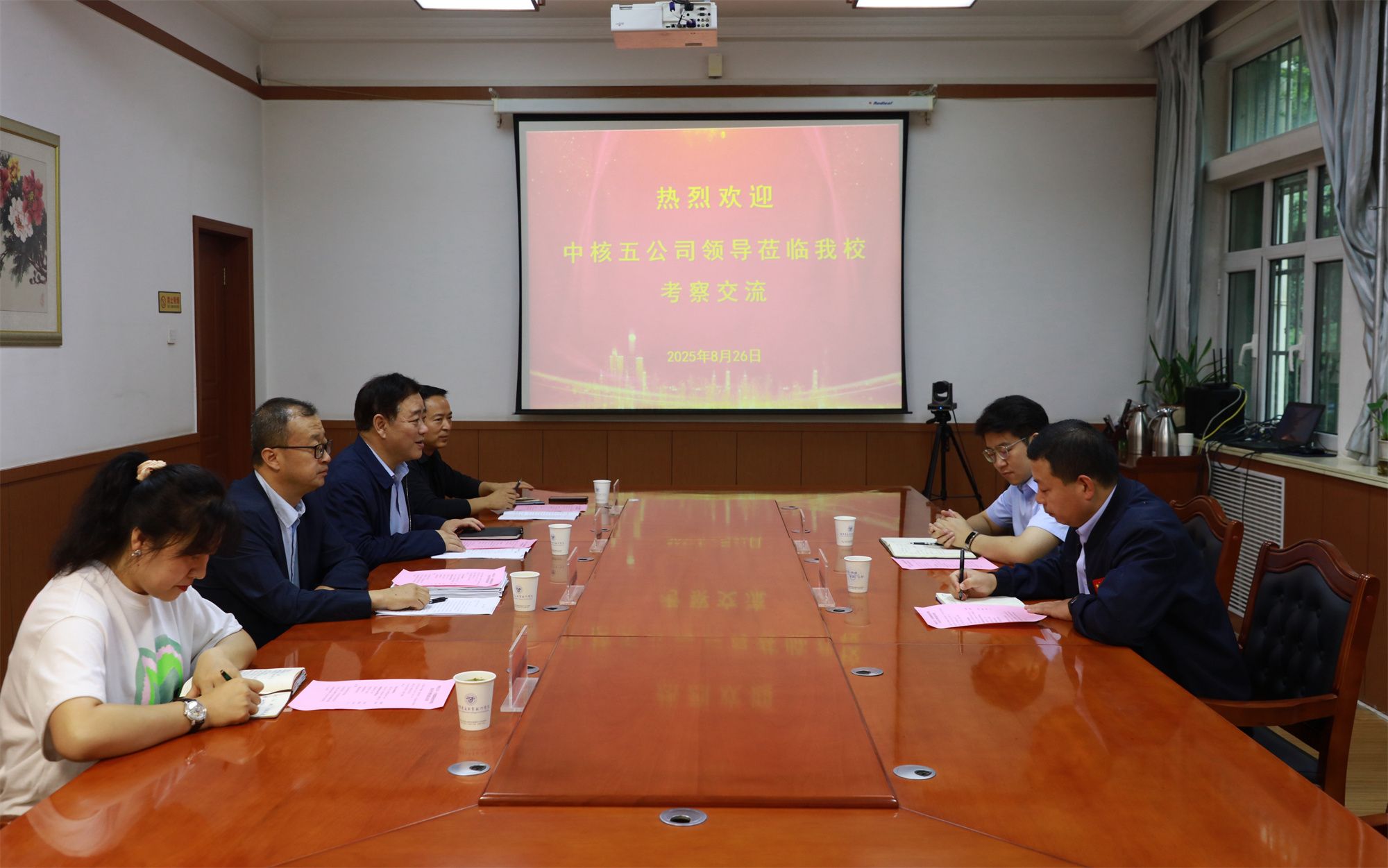 8月26日上午,中国核工业第五建设有限公司赴我校开展校企合作考察并召开座谈交流会。学校党委副书记、校长党星海,党委委员、副校长锁冠侠,中核五公司工程研究院培训中心主任刘增峰,人力资源共享中心招聘负责人郭凌峰,我校继续教育部部长王昱婷,智能制造学院院长王成参加座谈交流会。锁冠侠主持会议。
