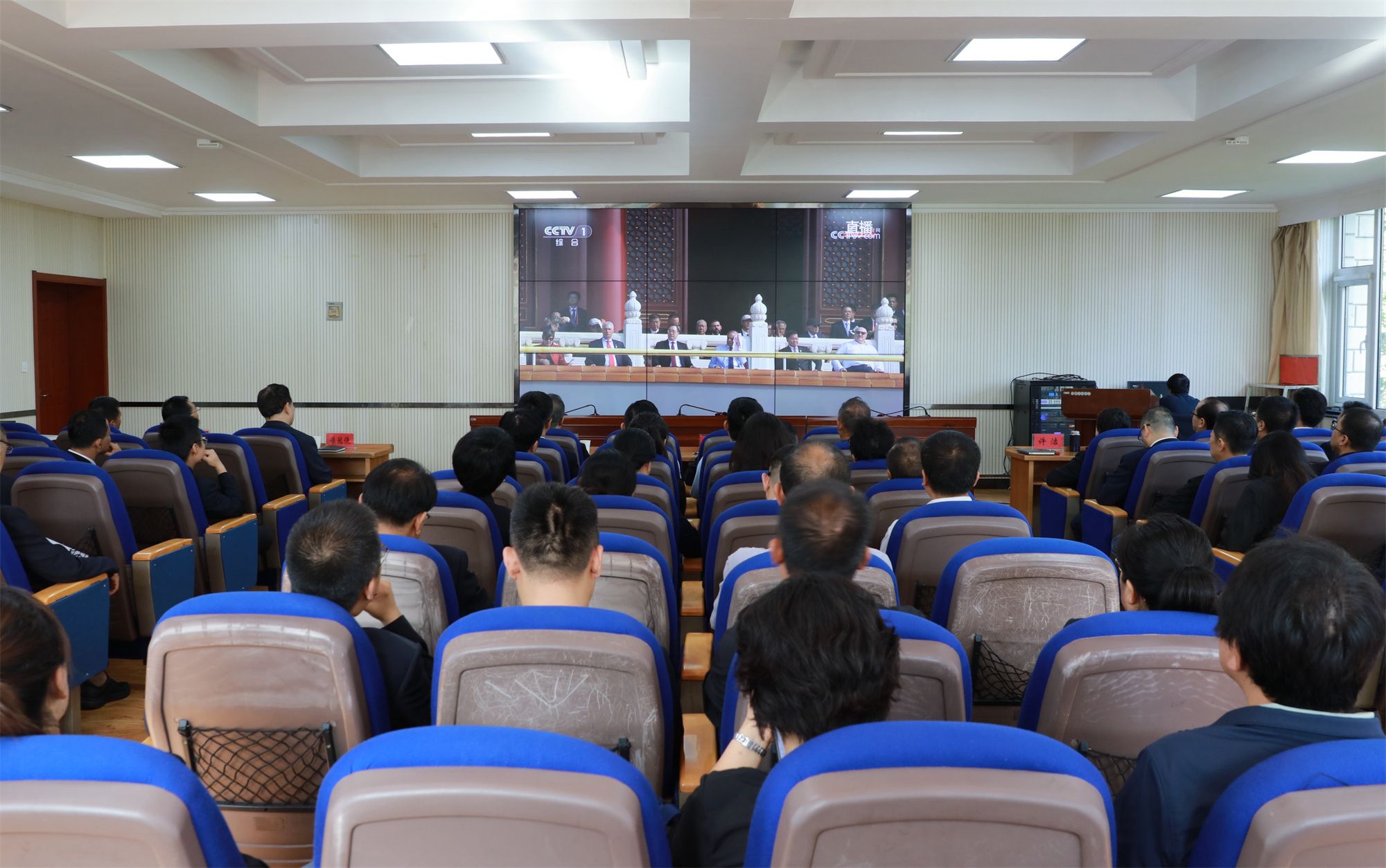 学校党委高度重视此次观看活动,提前进行安排部署,设置多个直播会场供集中观看,并在各二级学院设置分会场,确保全校师生有序参与,做到全员覆盖。学校党委书记赵彦军及领导班子成员、中层干部及各基层党组织书记在学术报告厅通过央视直播同步观看大会盛况。全体师生在体育馆、多功能报告厅、阶梯教室等分会场观看。
