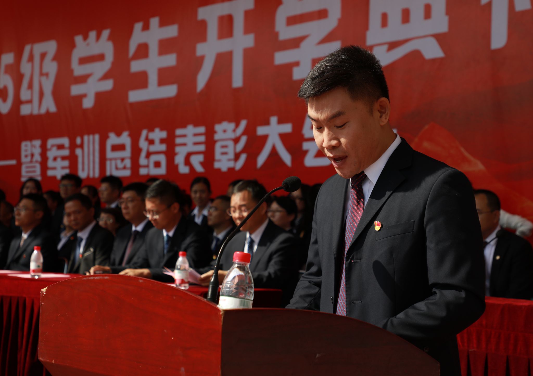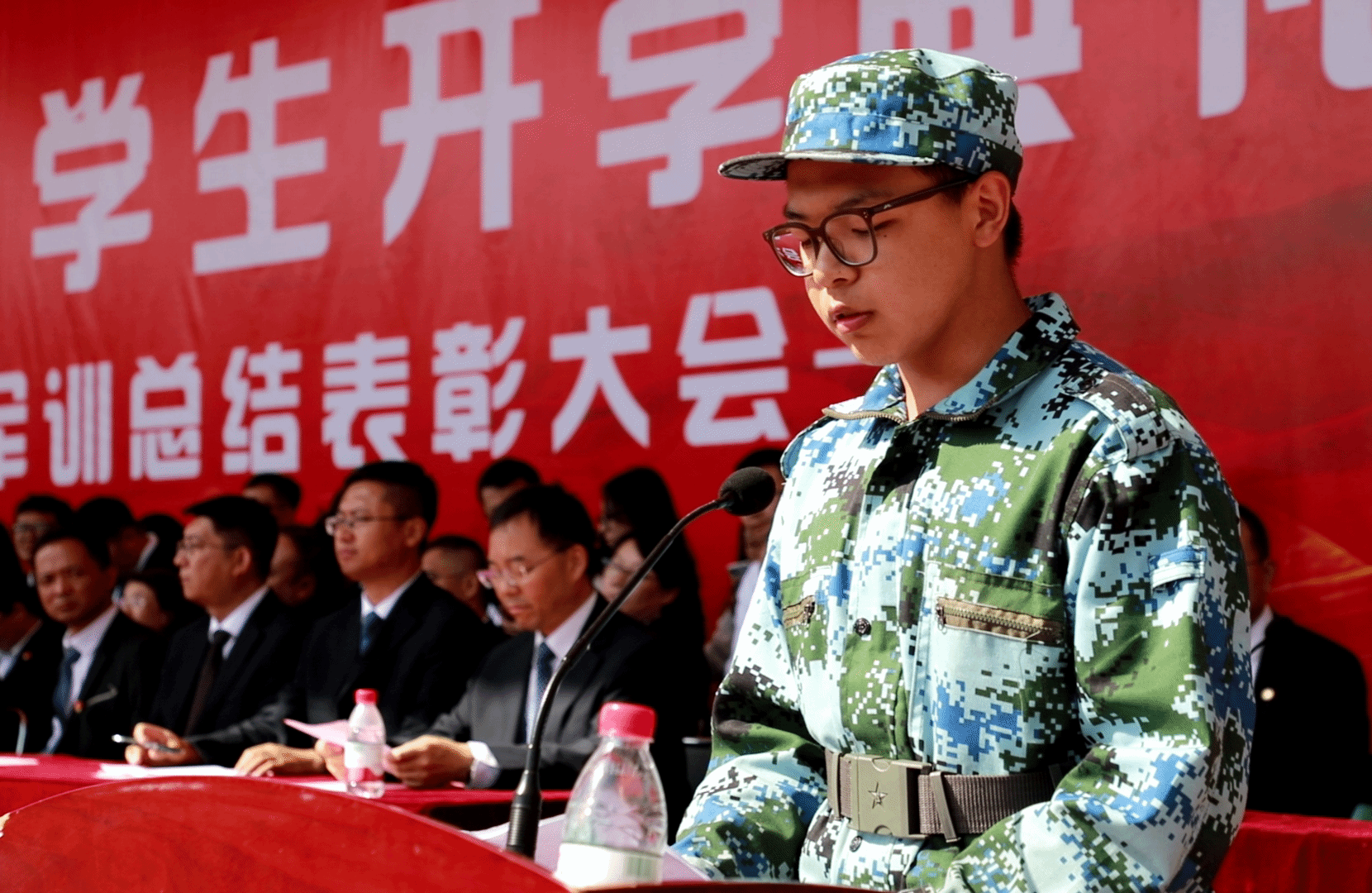 教师代表殷会斌在发言中表示,大学是人生的加油站,更是实现蜕变的练兵场,希望同学们以信念为灯塔,以实干为船桨,将课堂知识转化为实际能力,传承大国工匠精神,以家国情怀和职业道德为指引,为行业发展和国家建设贡献力量。交通工程学院2025级机械制造1班叶明哲代表新生做发言,他回顾了军训中从疲惫到蜕变的成长历程,对教官的严格要求和老师的温暖关怀表示了感谢。并表示将把军训中培养的纪律意识和团队精神融入大学生活,以自律和团结追逐梦想。