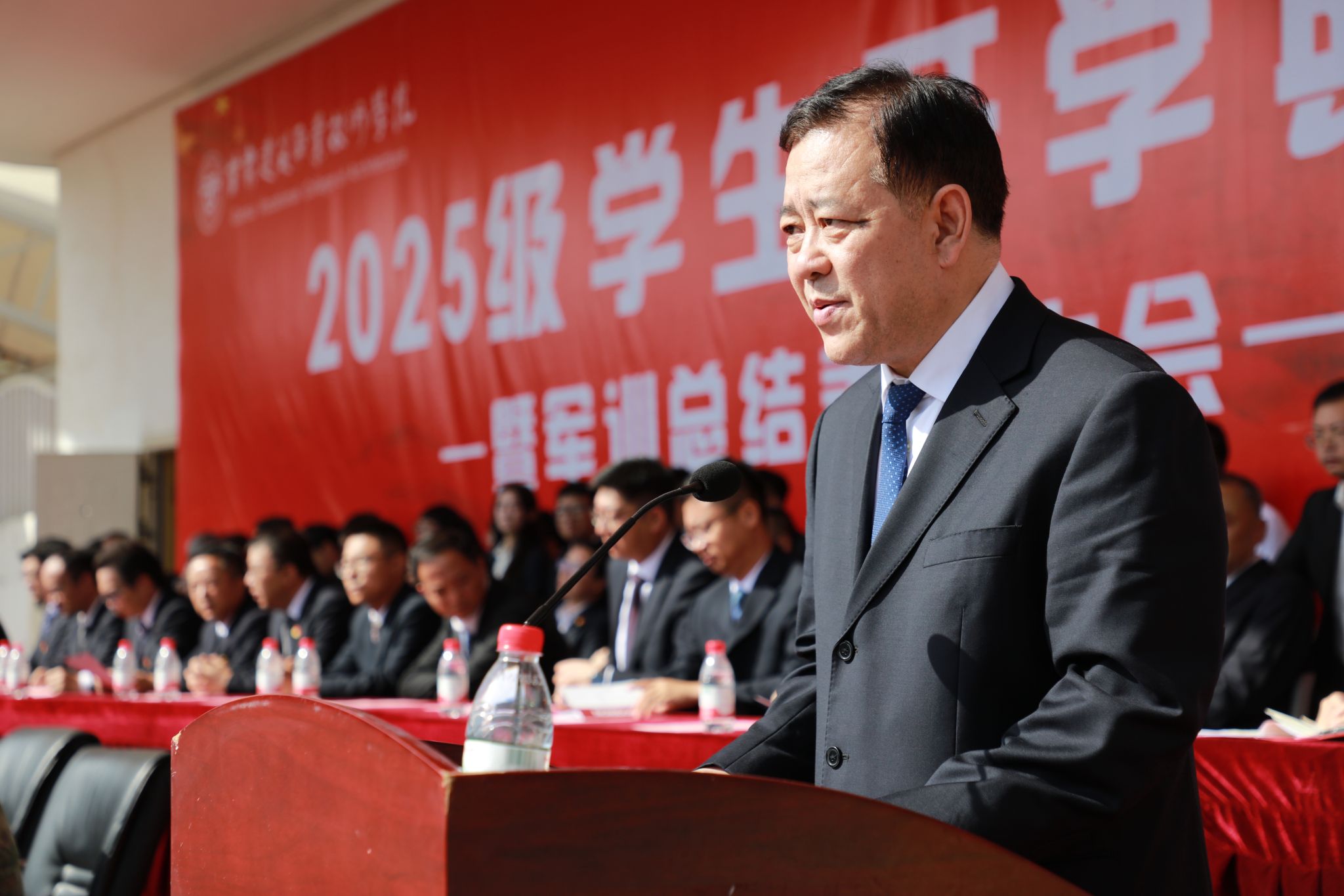 党委副书记、校长党星海在致辞中向全体新生表示热烈欢迎,对七里河区人民武装部及全体教官的辛勤付出表示衷心感谢。他表示,我校作为甘肃省唯一一所建筑类公办高职院校,始终秉持“质量立校、全员育人”的理念,致力于培养高素质技能人才。面向当前新基建战略全面推进、人工智能技术迅猛发展、城市更新需求持续升级的重要时期,建筑行业迎来了广阔的发展机遇。党星海勉励大家,军训不仅是身体的磨砺,更是精神的洗礼,要将军训中培养的纪律意识、团队精神和坚韧品质带入大学生活,并提出三点希望:一要心怀家国,将个人志向融入国家战略,在行业需求中找到奋斗方向;二要勤学善思,广泛学习前沿技术,参与实践锻炼,成长为德智体美劳全面发展的社会主义建设者和接班人;三要崇德向善,践行社会主义核心价值观,以自律和劳动塑造品格,在点滴中积累和沉淀自我。大家要以军训为起点,传承建院人的家国情怀,在新时代的广阔舞台上书写青春华章,为国家建设贡献青春力量。