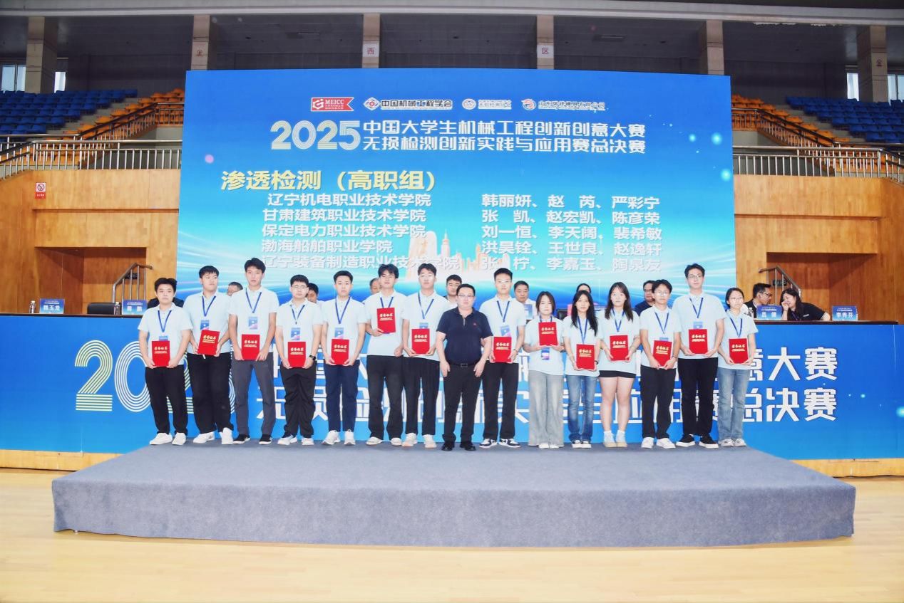 近日,2025年中国大学生机械工程创新创意大赛无损检测创新实践与应用赛全国总决赛在山东济宁圆满落幕。由我校智能制造学院赵志强和王成老师指导,学生张凯,赵宏凯,陈彦荣组成的无损检测团队,在高职组渗透检测赛项中荣获二等奖,并在获二等奖参赛队伍中取得第二名的优异成绩。
