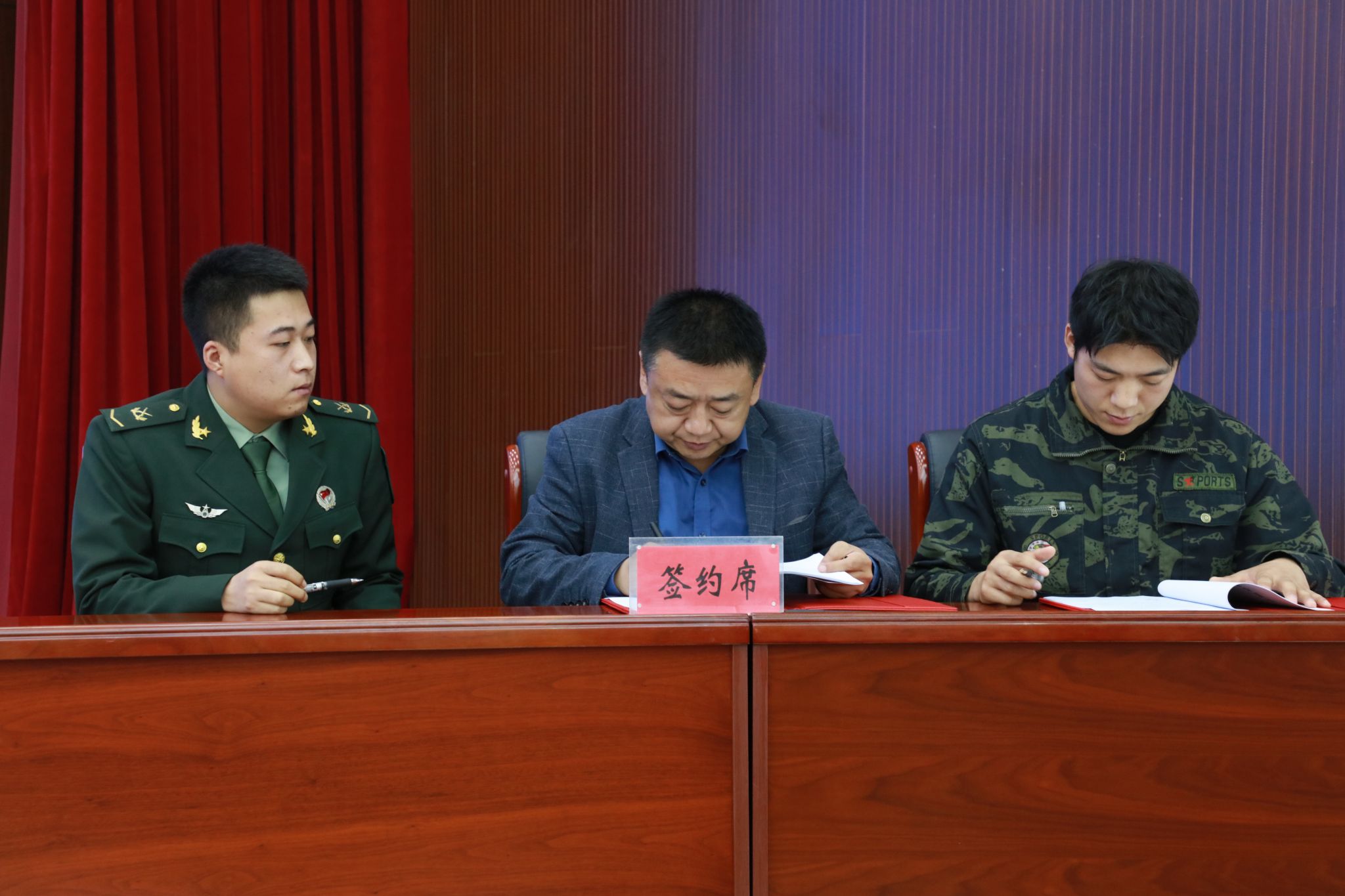 随后,中核五公司技术支持单位——甘肃千江建设工程有限公司总经理郭海伟与优秀学员代表签订中核五公司技术支持用工协议。三方共同签订“政校企”合作退役军人就业培训框架协议。优秀学员刘建伟代表全体学员发言。