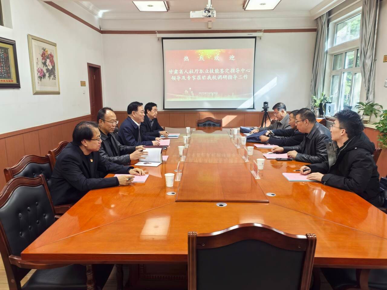 10月28日,甘肃省人社厅技能鉴定指导中心办公室主任李波及三位专家一行人来我校进行“甘肃省职业技能等级认定机构续期备案”工作考察调研。学校党委委员、副校长锁冠侠,培训部全体工作人员陪同。