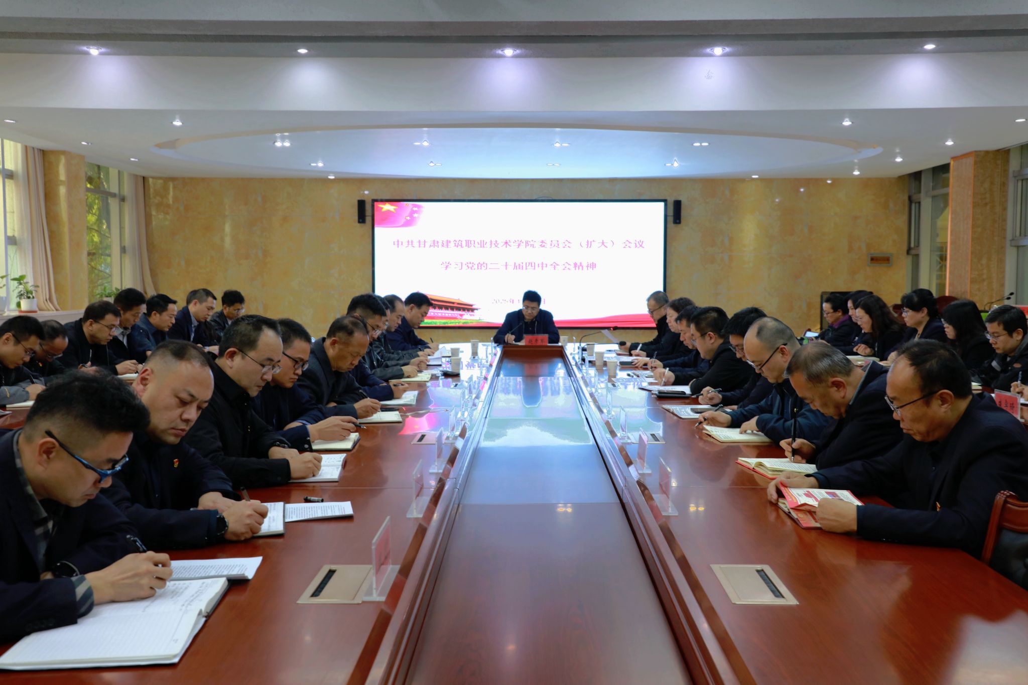 11月3日,党委书记赵彦军主持召开党委扩大会议,专题学习党的二十届四中全会精神。领导班子成员,各部门、二级学院及教学单位负责人参加会议。