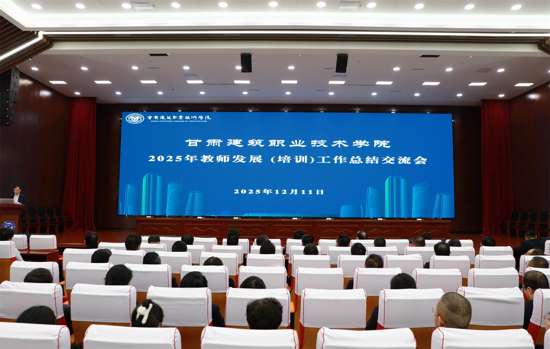 12月11日,甘肃建筑职业技术学院举行智慧运维学院、人工智能学院揭牌仪式暨2025年学校教师发展(培训)工作总结交流会。党委书记赵彦军及领导班子成员,全体教职工参加,会议由党委委员、副校长高忠有主持。