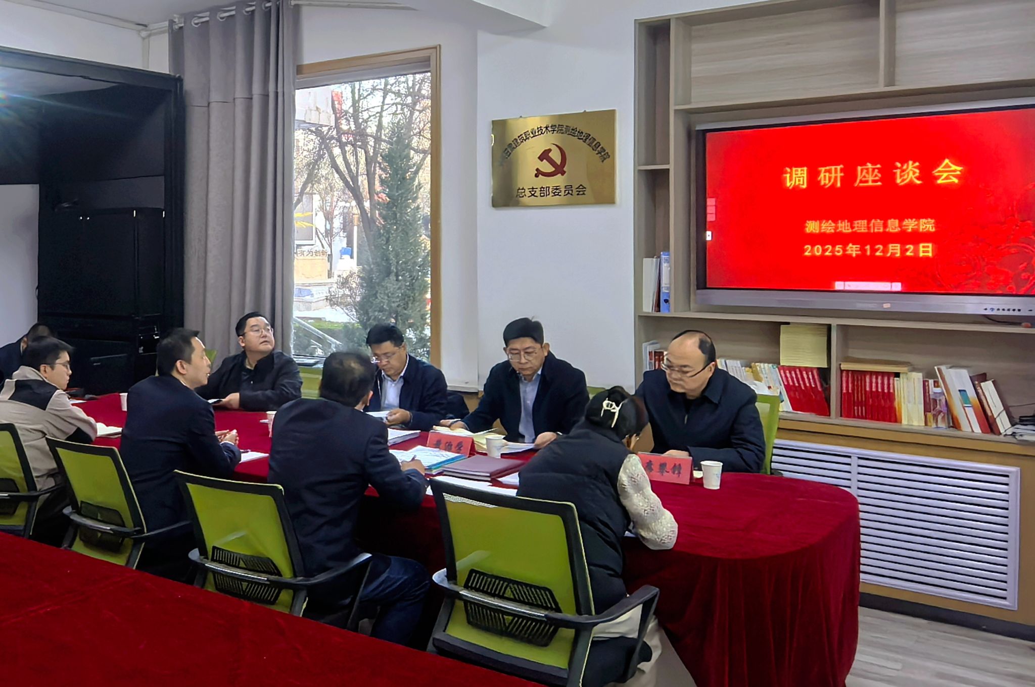 近日,党委书记赵彦军深入测绘地理信息学院开展调研指导工作,通过听取汇报、交流研讨等形式,全面了解学院发展情况。学校办公室、党委组织部、教务处负责人陪同调研。