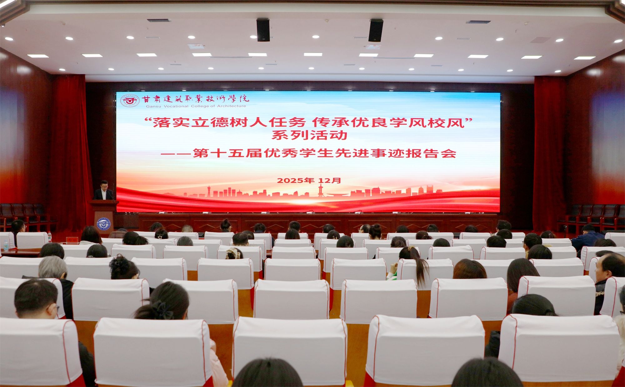 12月25日,我校举办了第十五届优秀学生先进事迹报告会。党委委员、副校长高忠有,各二级学院、相关部门负责人,以及师生代表参加。报告会由党委学生工作部部长郝昭主持。