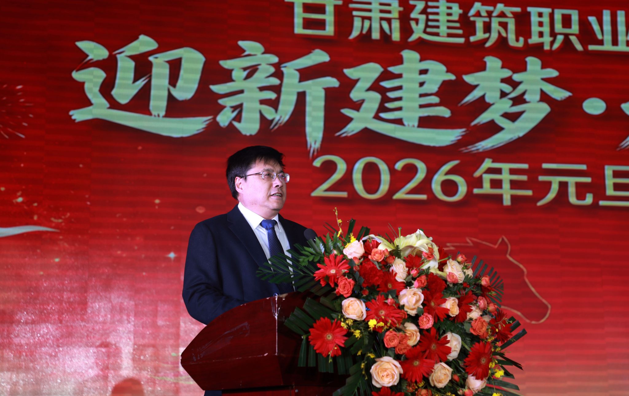 2025年12月30日,甘肃建筑职业技术学院2026年元旦联欢晚会在体育馆成功举办。党委书记赵彦军及领导班子成员,全体师生观看了晚会。