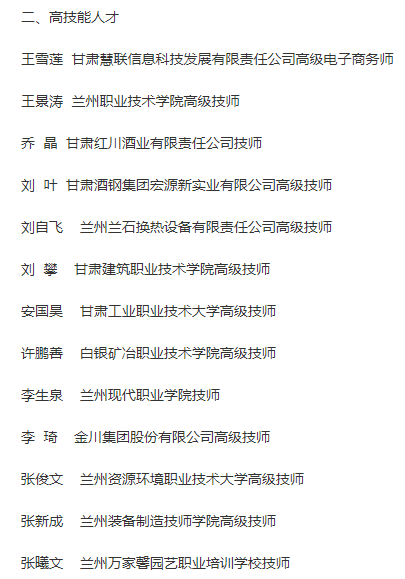 近日,根据《甘肃省领军人才队伍建设实施办法》和《陇原青年英才选拔管理办法》相关规定,经逐级推荐、专家评议及省委人才工作领导小组会议审议,公布了省领军人才聘期考核优秀等次人选以及2025年甘肃省领军人才、第四批陇原青年英才选拔人选名单。