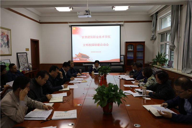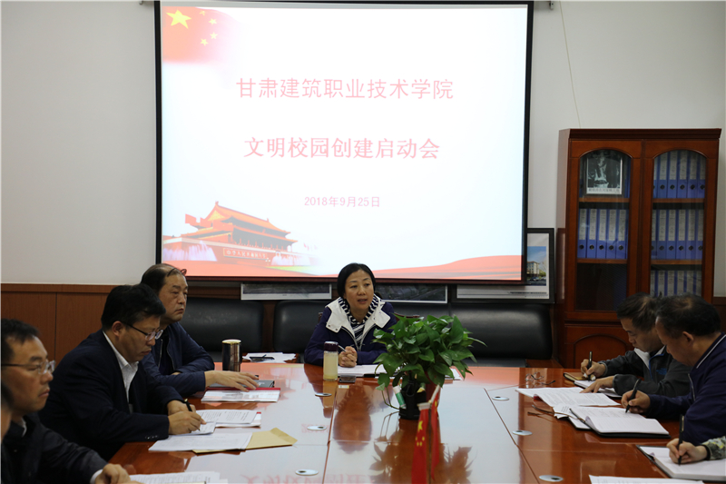 会议宣读了《甘肃建筑职业技术学院文明校园创建活动》方案,对学院文明校园创建工作做出全面安排部署,细化了文明校园创建的任务责任,明确每一项工作的责任部门、责任人。学院党委书记、院长王娟丽讲话时指出,要以此次文明校园创建启动为契机,认真总结以往创建的经验做法,全面分析文明校园创建的新形势、新任务,结合院情扎实落实创建方案,推进各项创建工作取得实实在在效果,推进学院文明创建工作持续取得新进展。