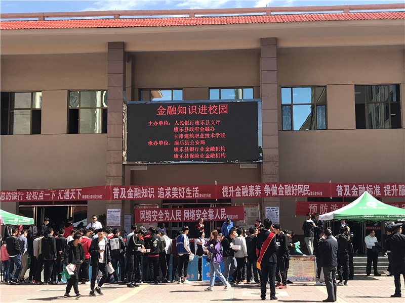 9月20日中午,由中国人民银行康乐县支行、康乐县政府金融办、甘肃建筑职业技术学院主办,康乐县公安局、康乐县银行业金融机构、康乐县保险业金融机构承办的“金融知识进校园”活动在学院康乐校区举行。