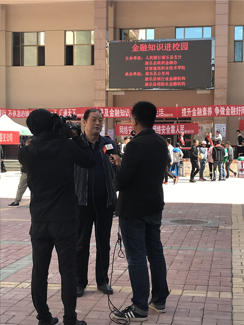 活动过程中,学院党委副书记、纪委书记王继伟莅临现场并接受了康乐电视台记者的采访。他指出,近年来,非法校园贷等风险事件频发,校园金融诈骗乱象层出不穷,给不少学生和家庭造成了严重伤害,引发了社会各界的广泛关注,也暴露出部分在校学生金融知识缺乏、金融风险防范意识淡薄等问题。本次活动的开展,是学院加强校园不良网络借贷风险防范和教育引导工作的具体举措,对推动金融知识普及,帮助学生建立金融安全思想防线,营造健康的学习、生活环境具有积极作用。