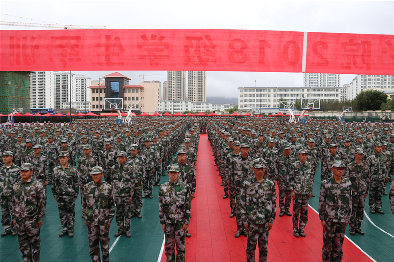 大会在雄壮的国歌声中拉开帷幕,在军训团团旗的指引下,2018级参加军训的全体同学依次展示了训练的成果。尽管凉风阵阵、阴雨绵绵,同学们依然精神抖擞、豪情冲天,队列动作演示整齐划一、势如霹雳,男子擒敌拳招招发力、步步紧逼,齐踏步互换气势恢宏、瞬息万变,女子活力青春操特色鲜明、明快热烈,精彩的表演赢得了阵阵热烈的掌声,一次次将现场气氛推向了高潮。